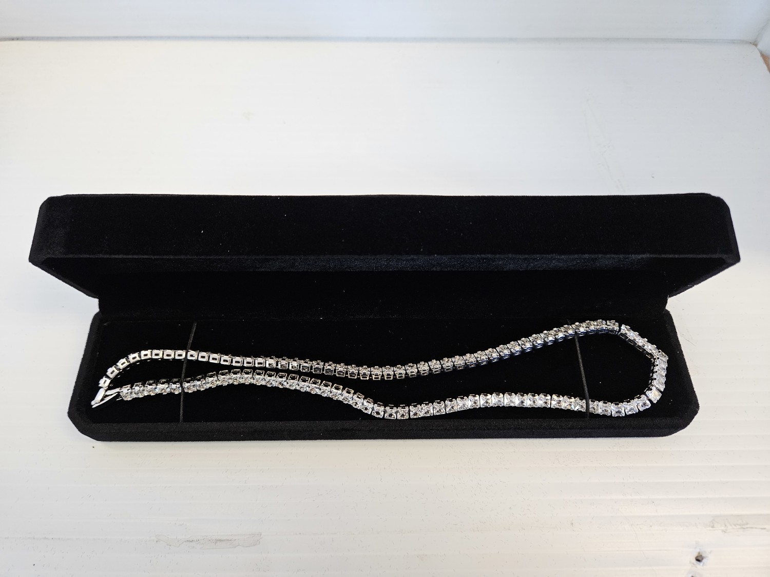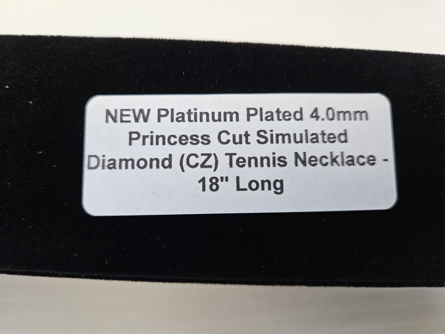 7067 Platinum Plated 4 mm Princess Cut Simulated Diamond Tennis Necklace