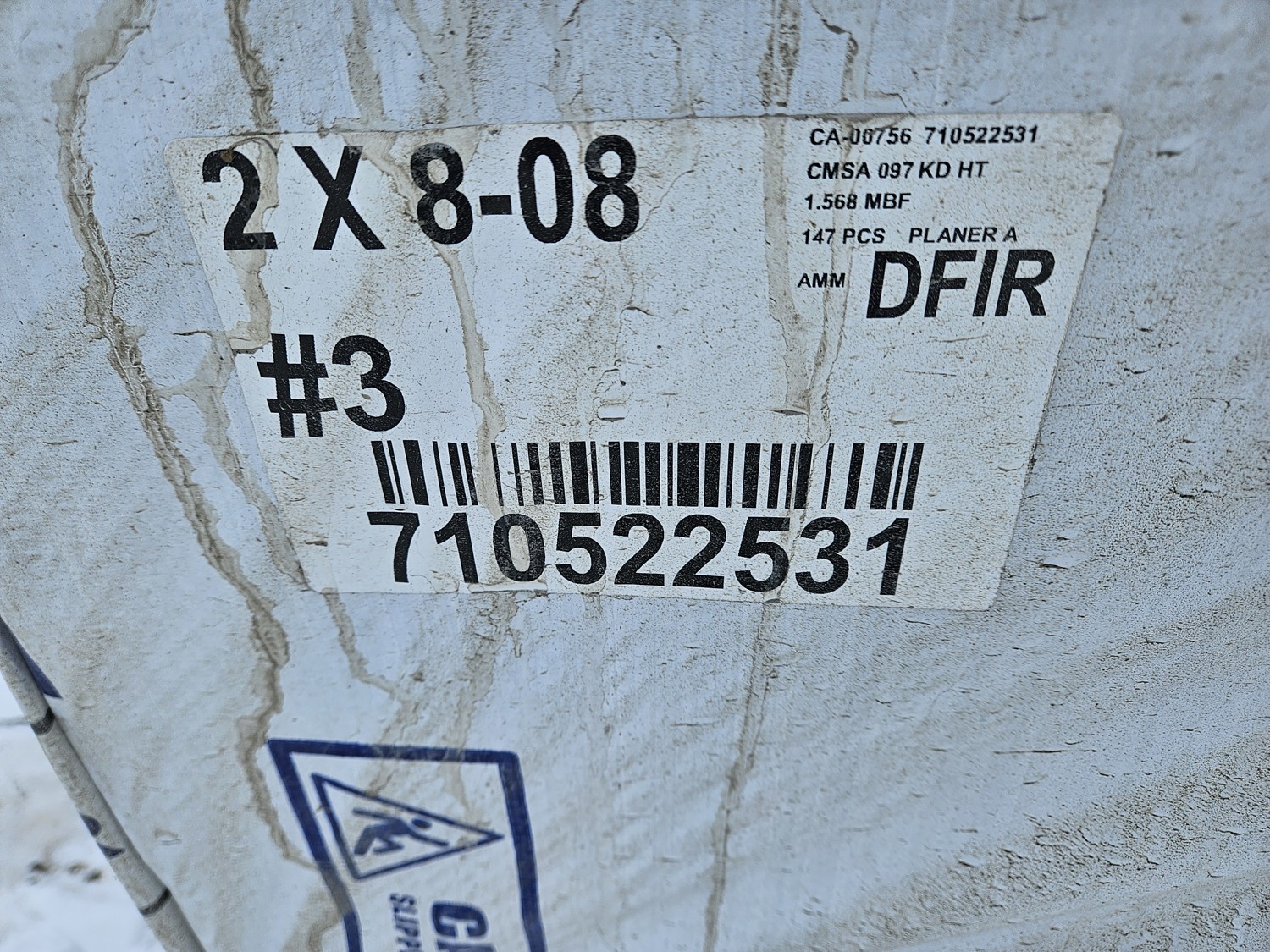 7886 Qty of (147) 2X8 Inch X 8 Ft Douglas Fir Lumber