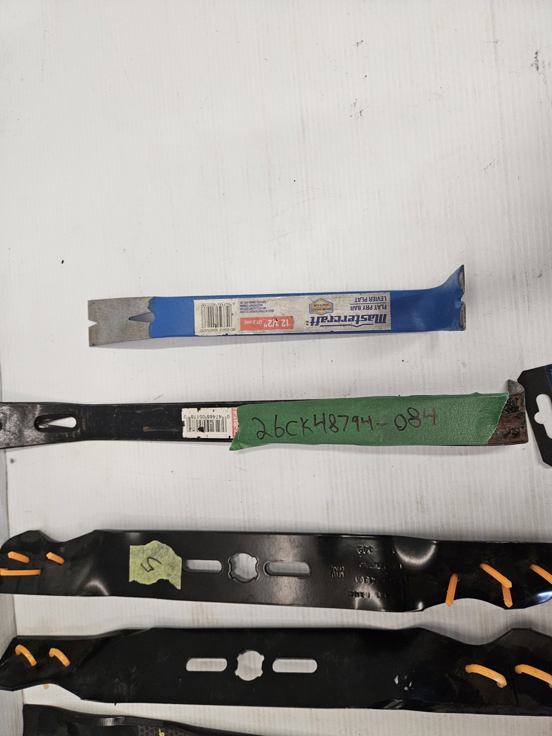 7310 Qty of (4) Lawnmower Blades W/ (2) Crow Bars