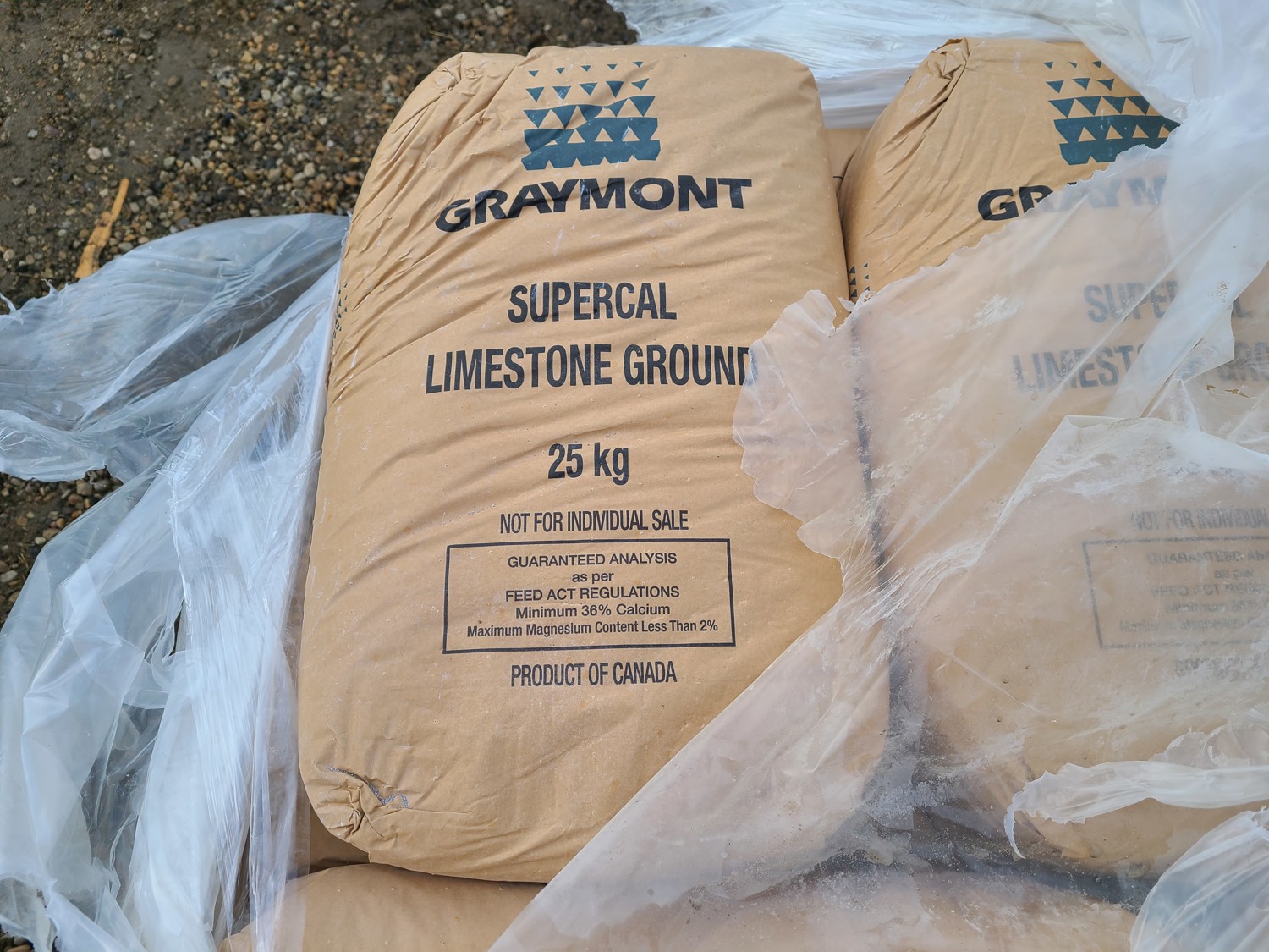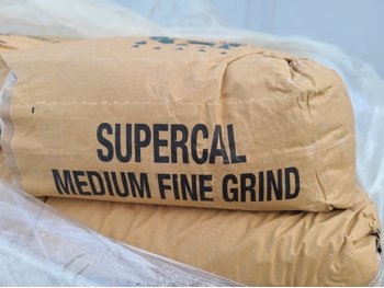 7859 Qty of (56) Graymont 25 kg Supercal Limestone Medium Fine Ground Bags (Unused)