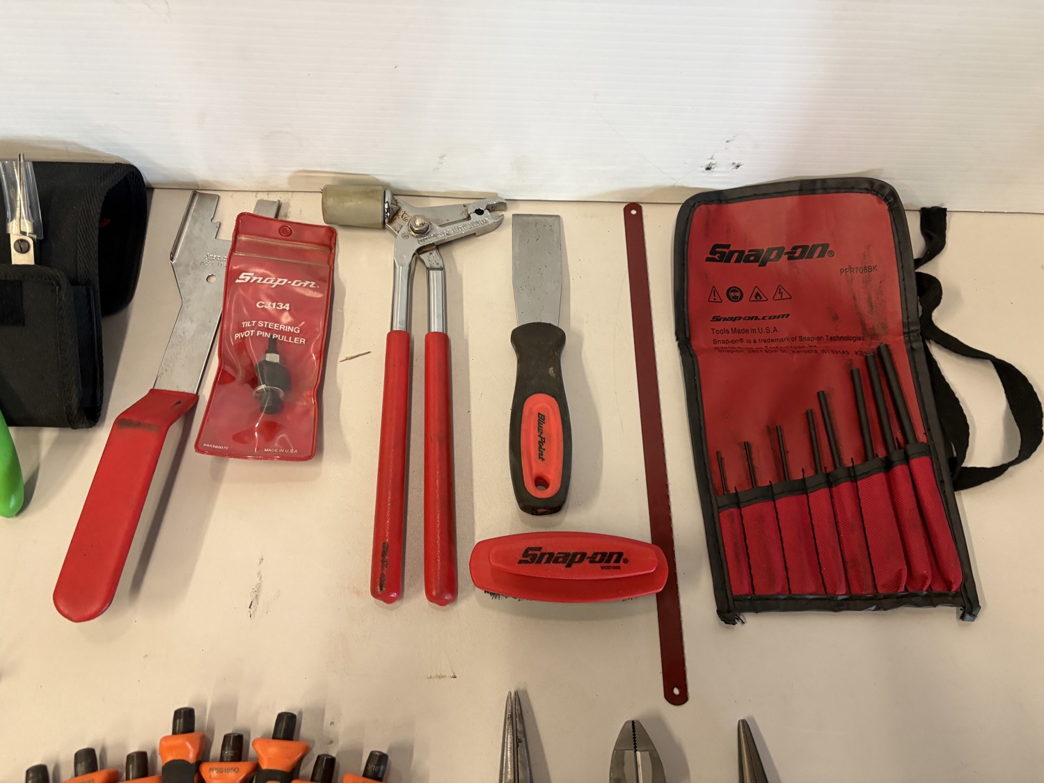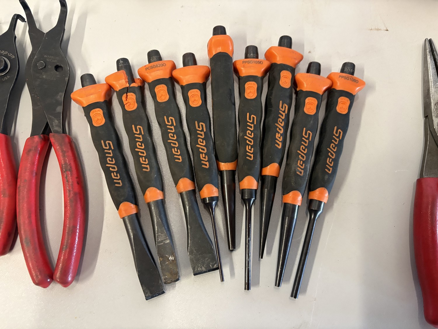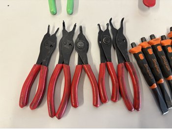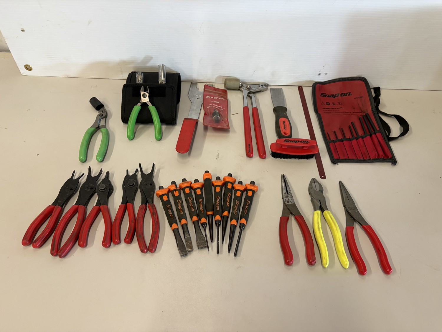 Cutters, plyers, punch & chisel set, snap ring plyers, mallet, brush