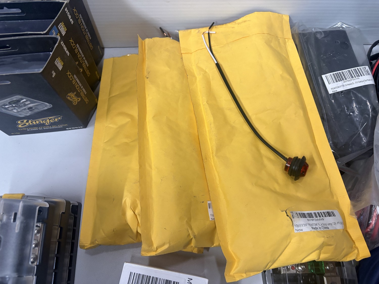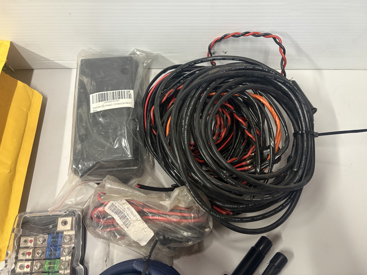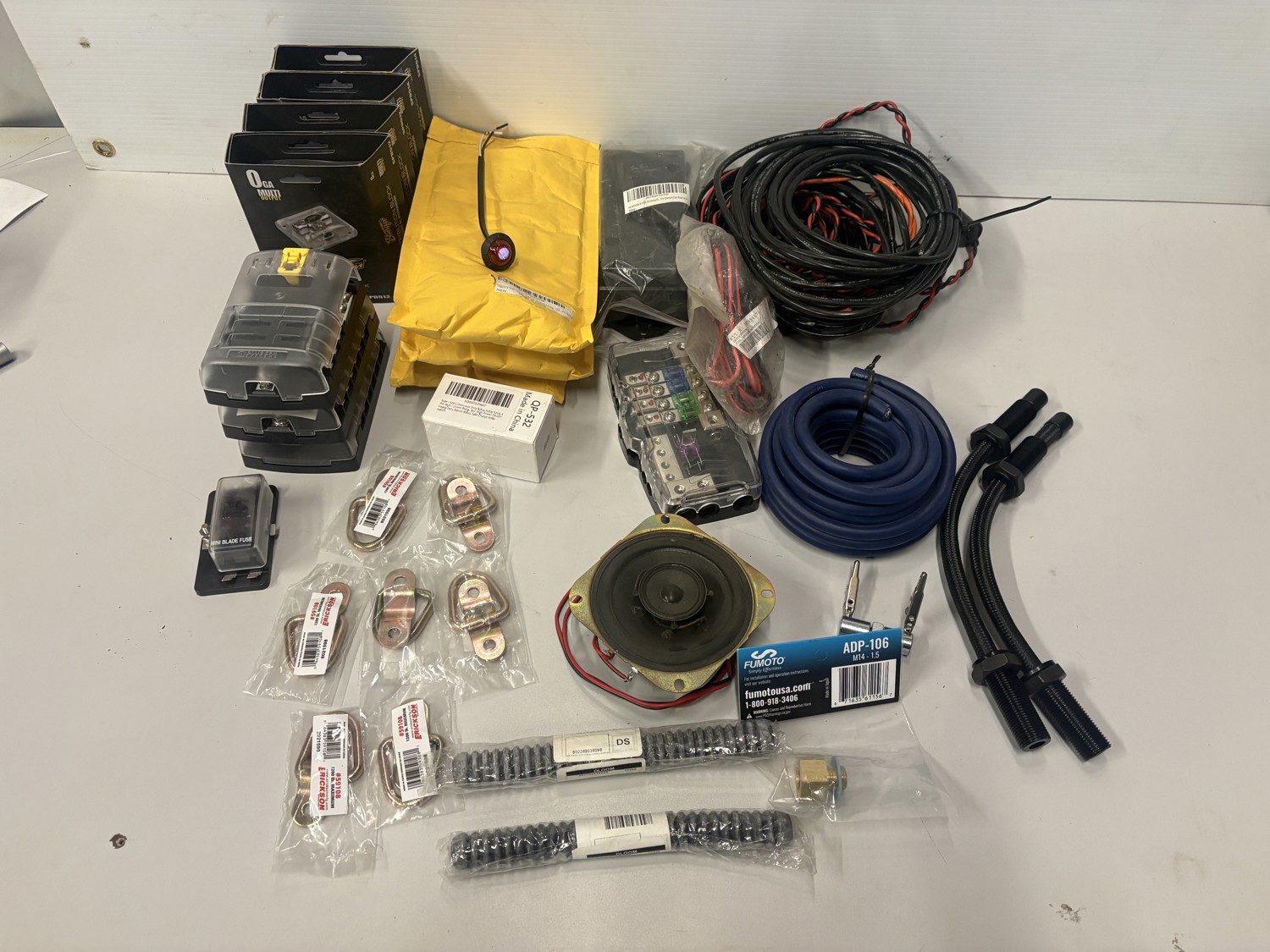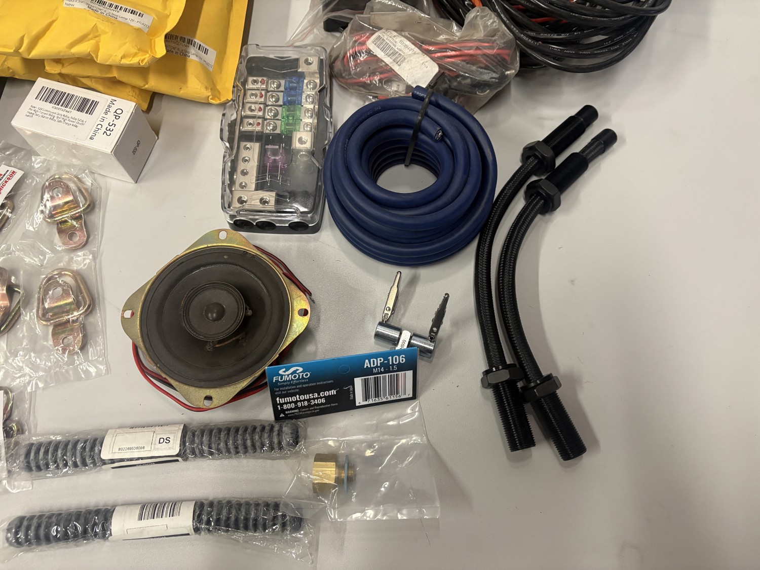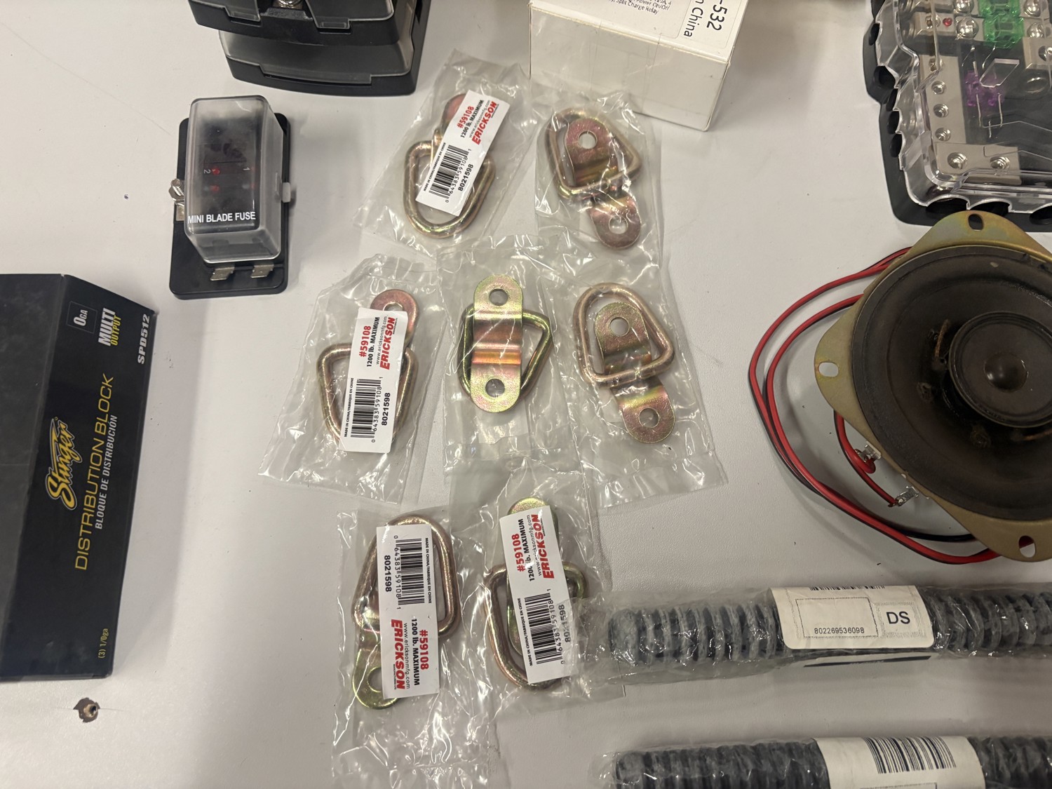 Fuse blocks, distribution blocks, tie down hooks, speaker wire, LED lights