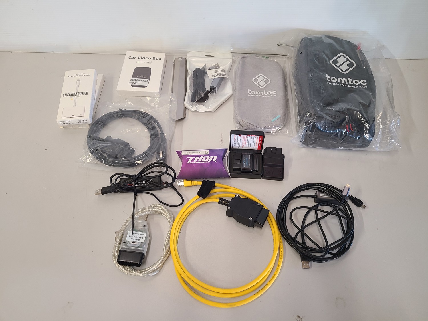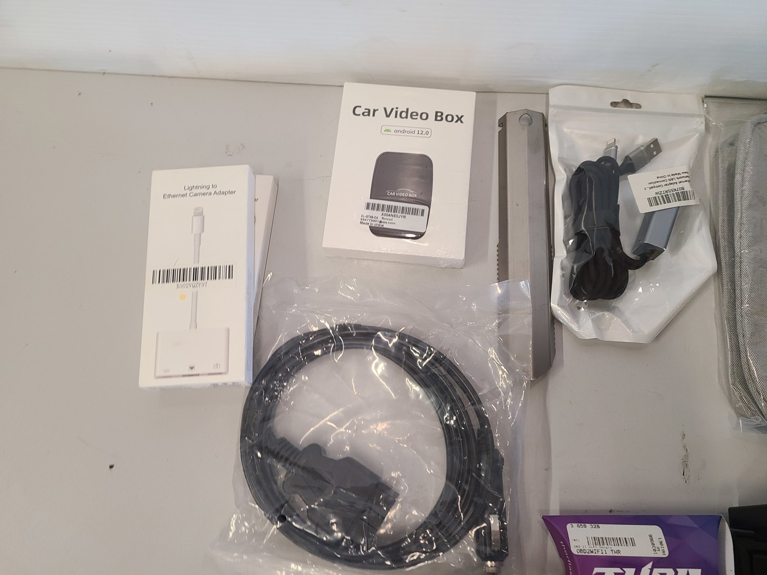 Apple lighting to ethernet adapters, car video box, tom tom GPS bags