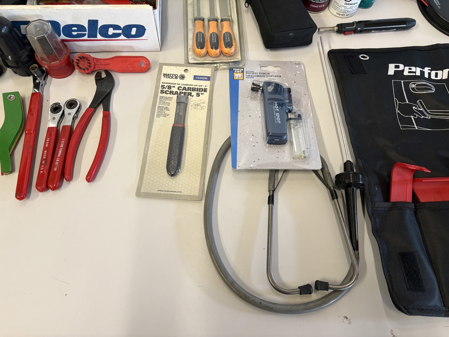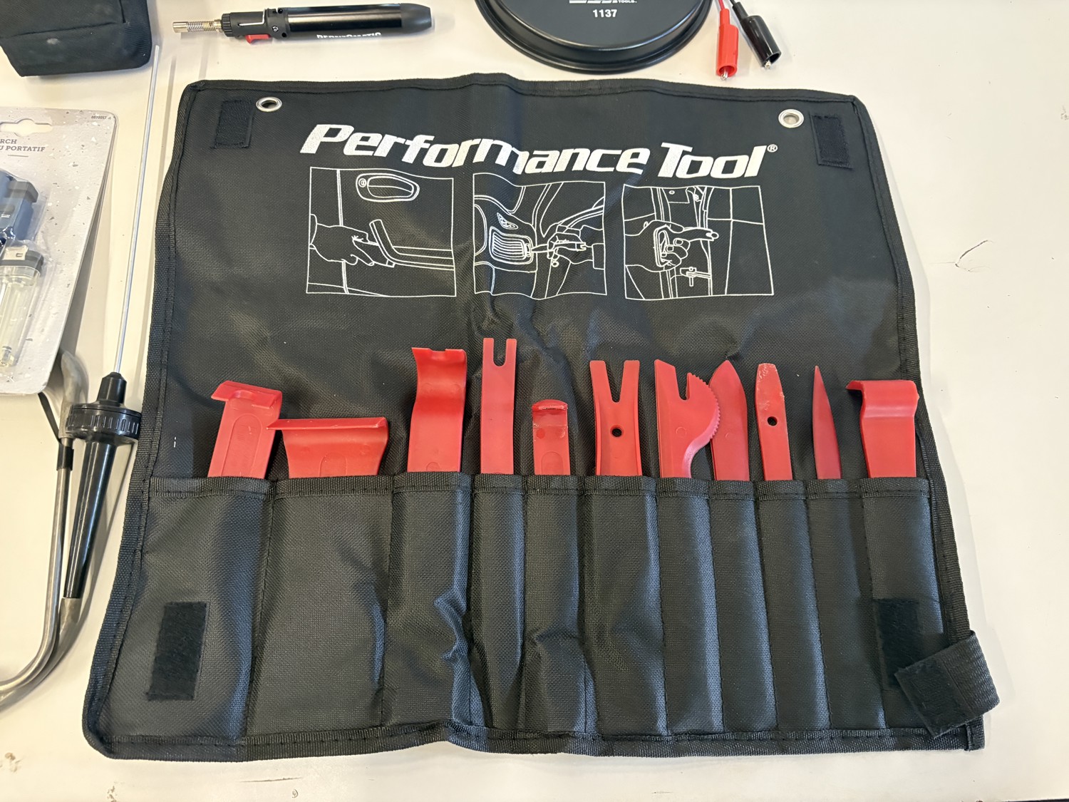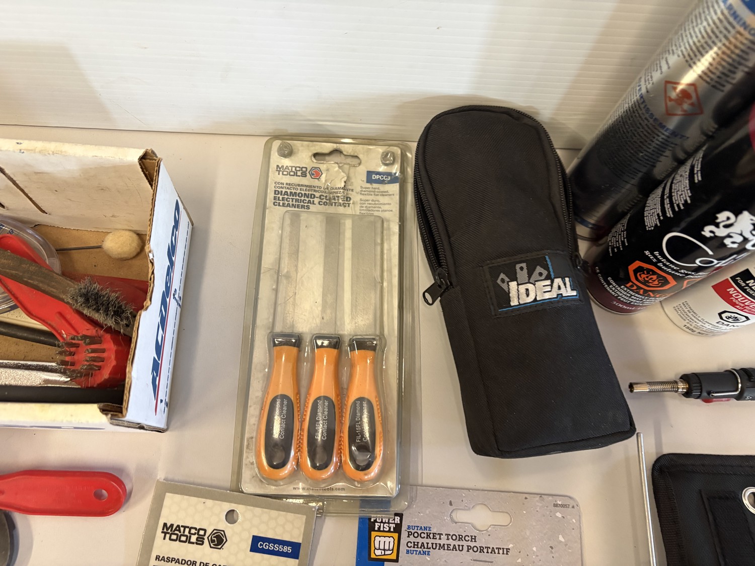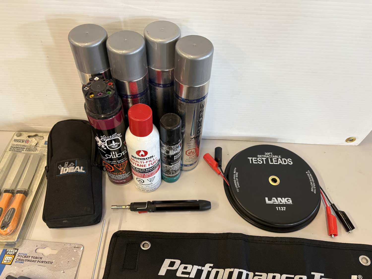 Torches, butane bottles, plastic pry set, 30 ft test leads