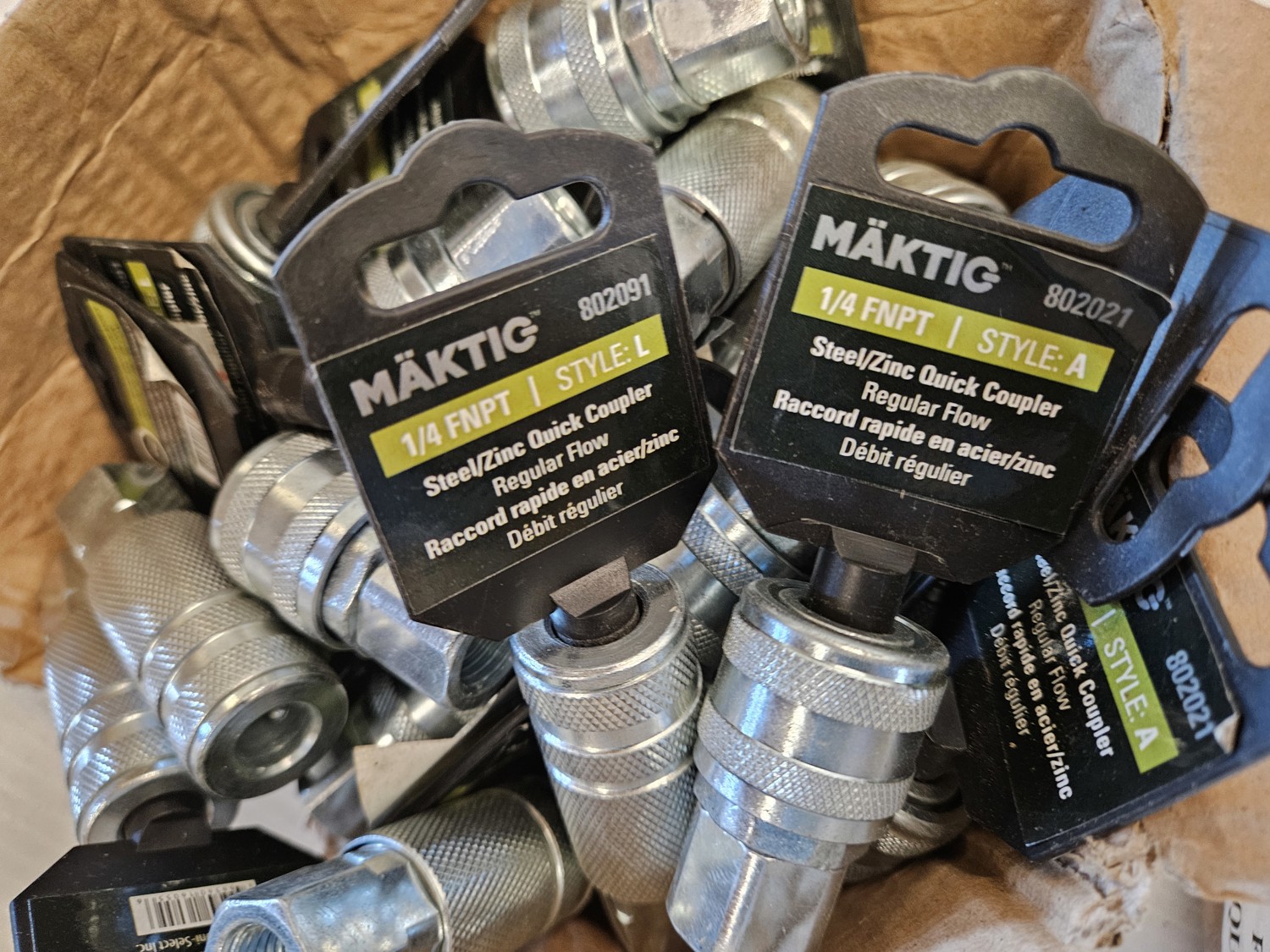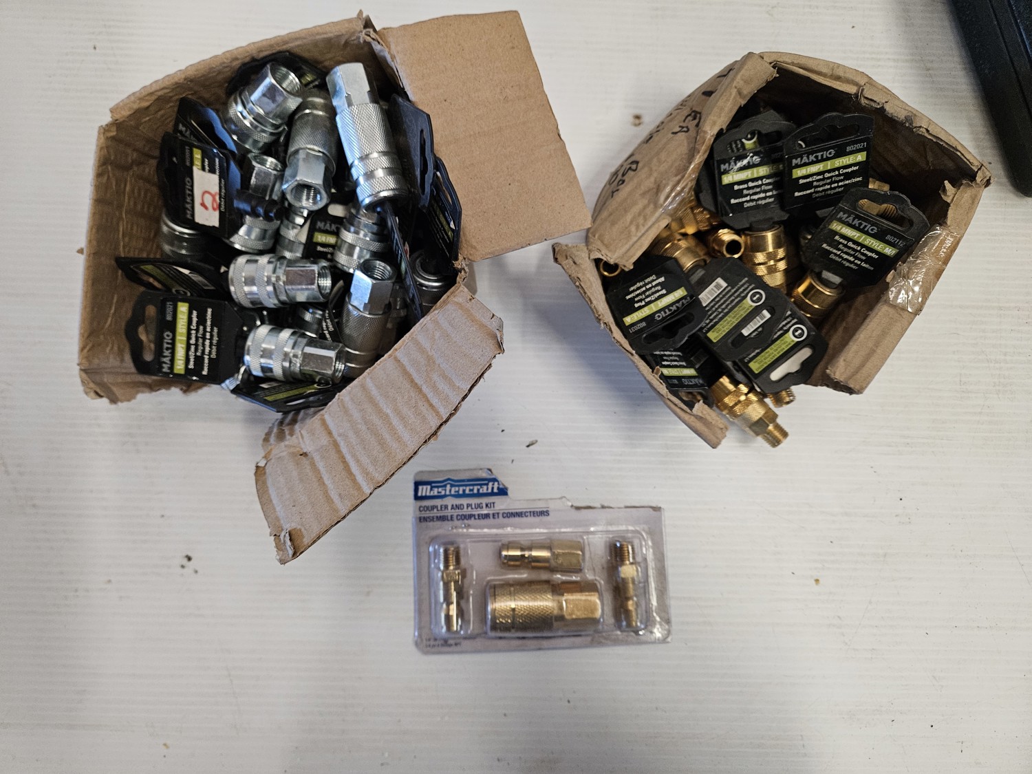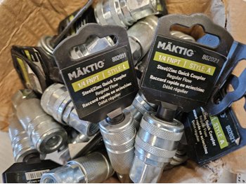 7321 Qty of Maktig 1/4 Inch MNPT Brass Quick Couplers w/ 1/4 Inch FNPT Steel/Zinc Quick Couplers