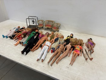 variety of collectable barbie dolls, and a mini furniture set