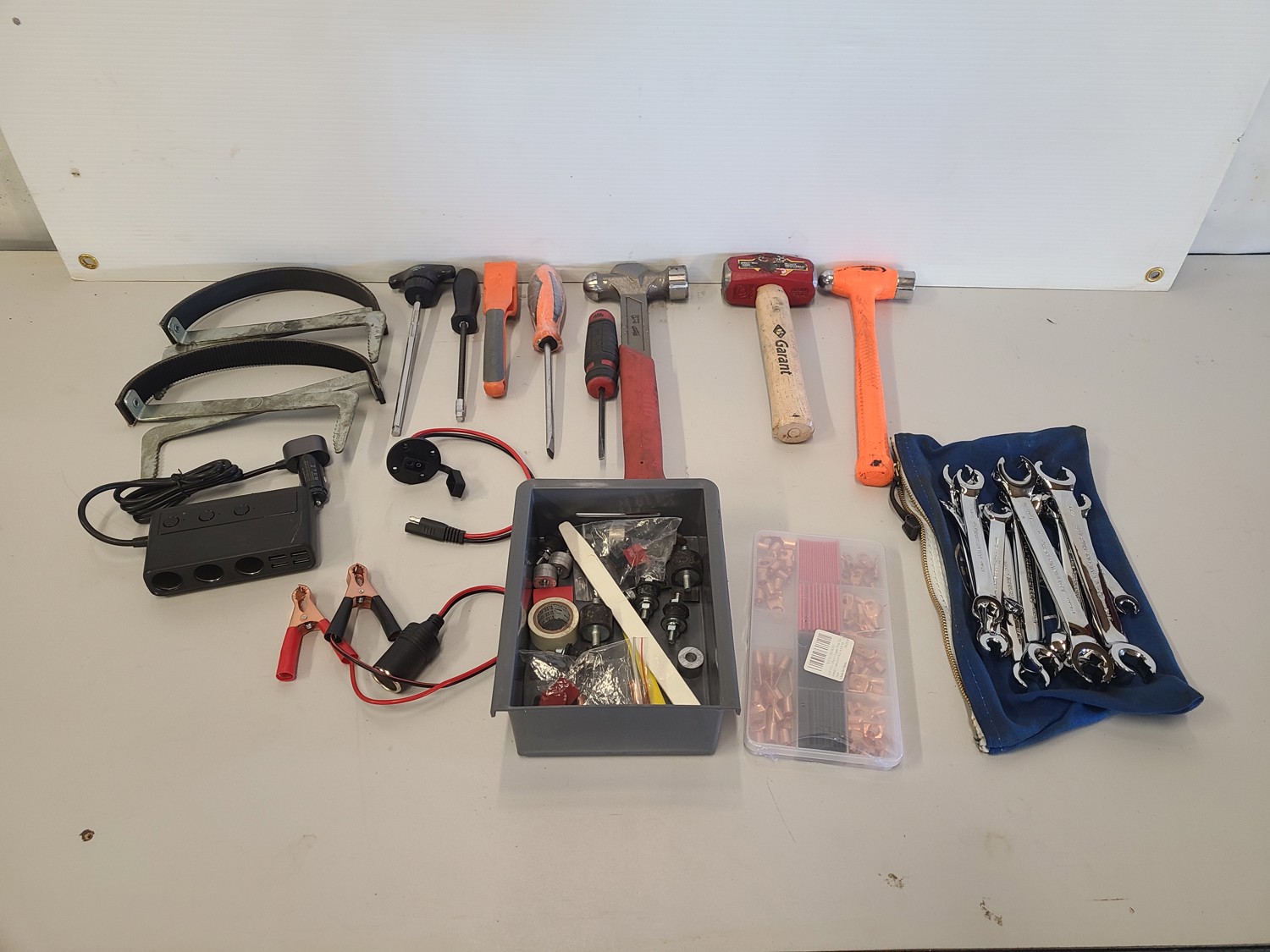 Hammers, screw drivers, power pack, copper wire terminal connector kit