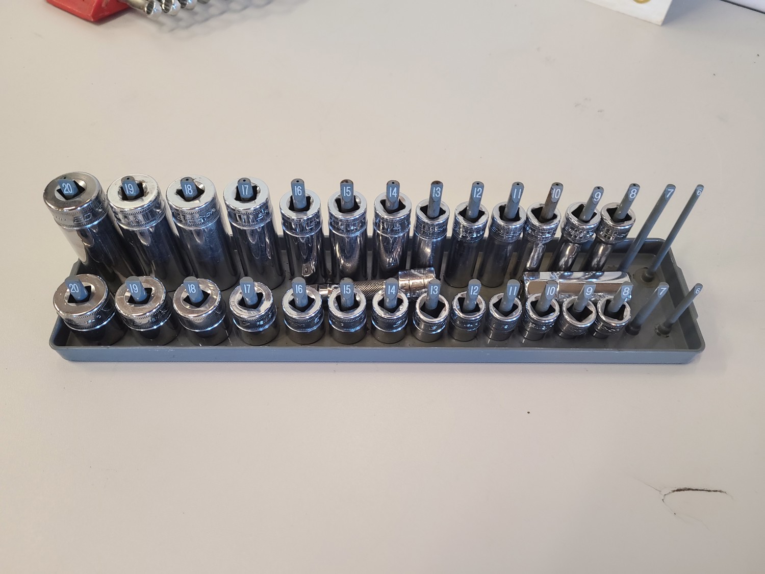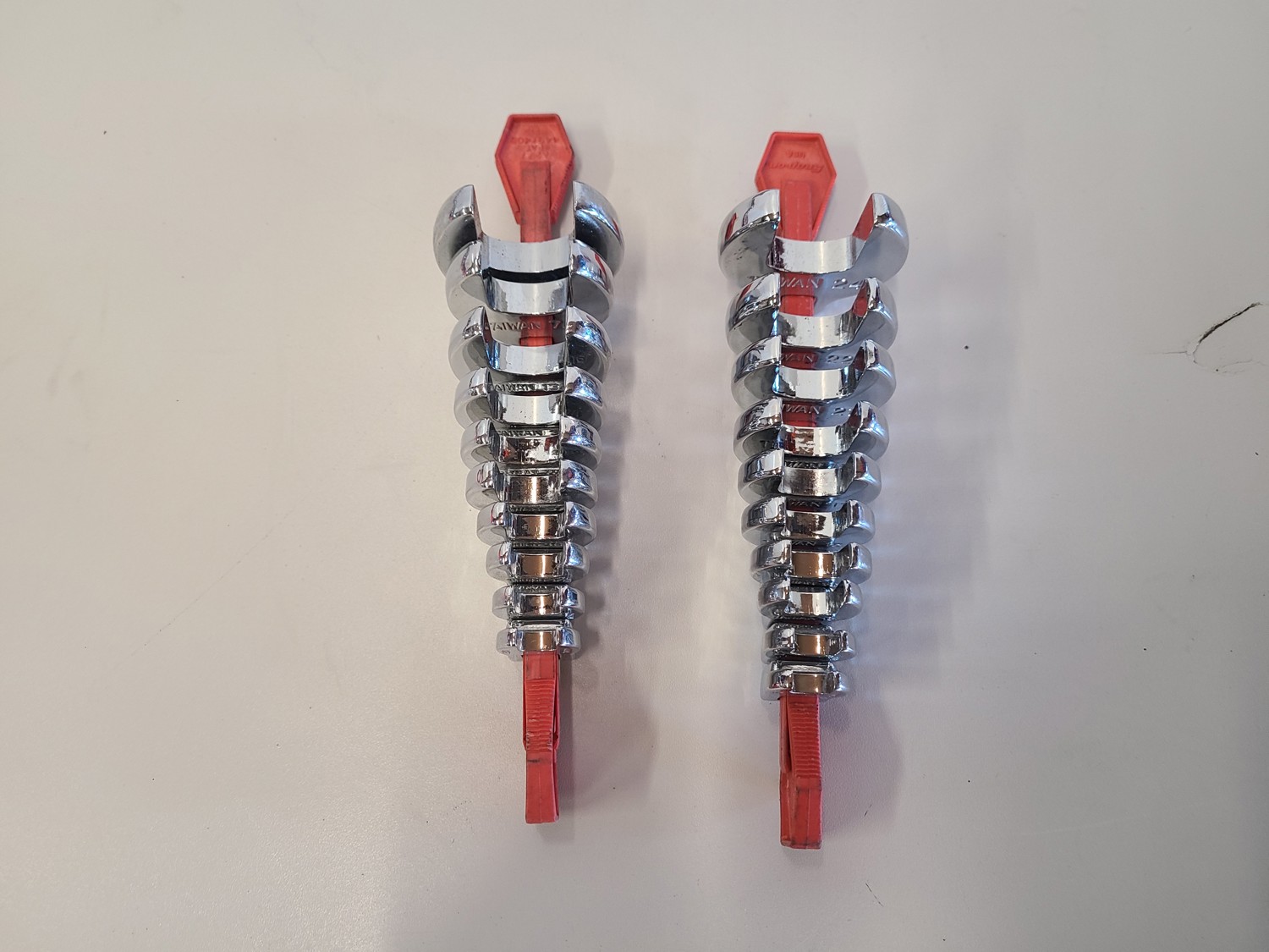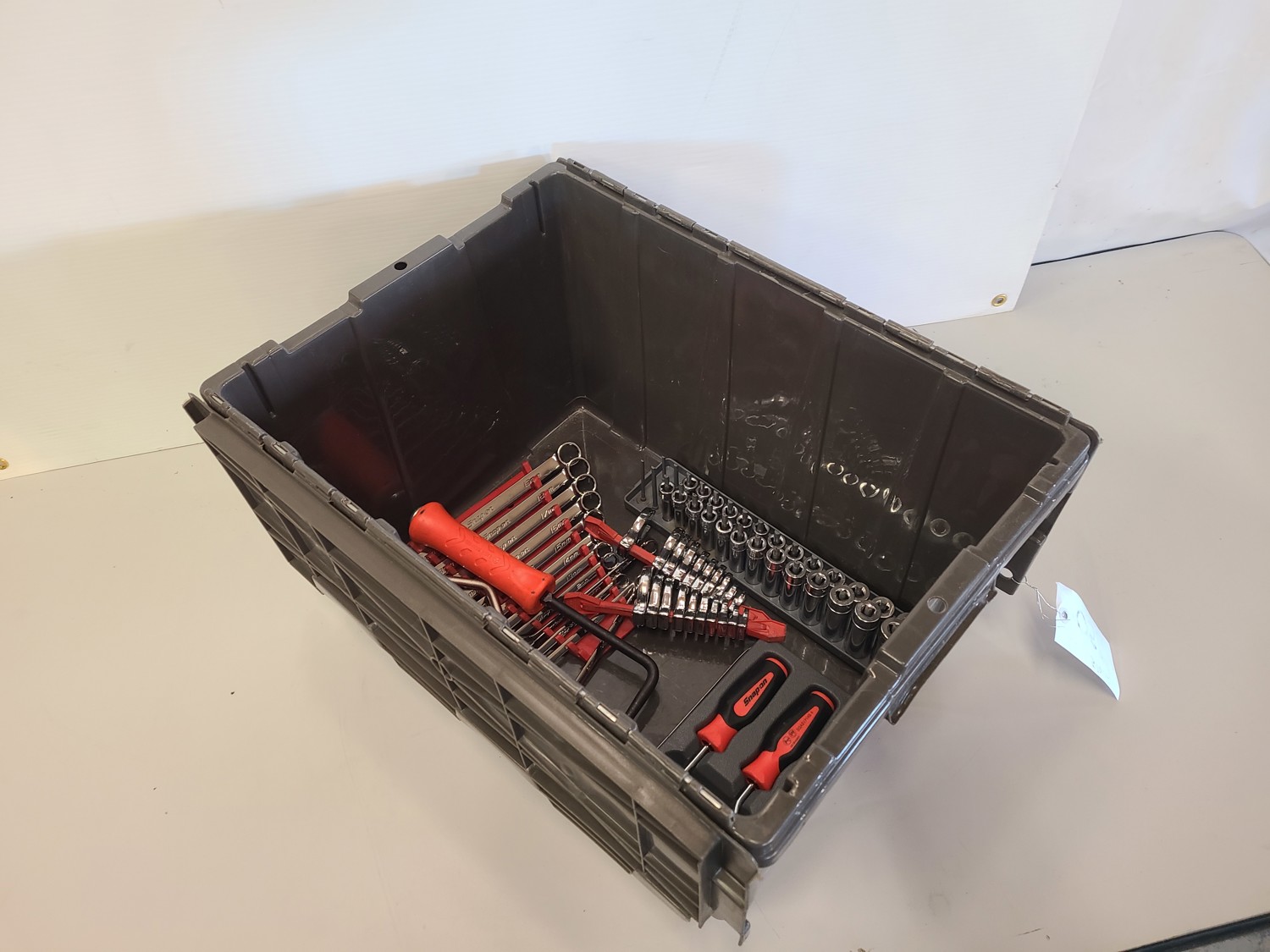 Metric wrenches, 3/8 inch metric sockets, 2 piece soft grip short radiator picks, screw drivers