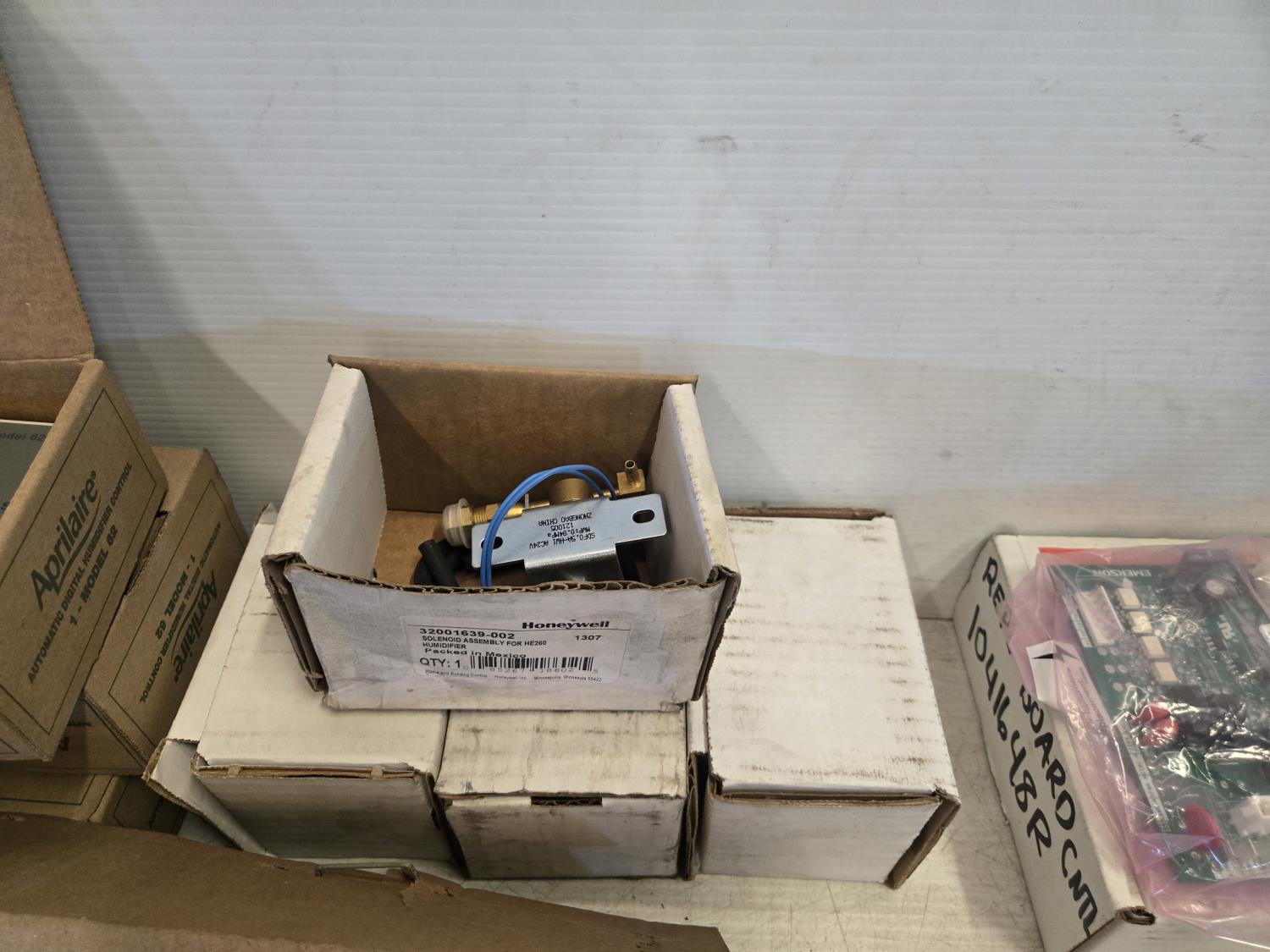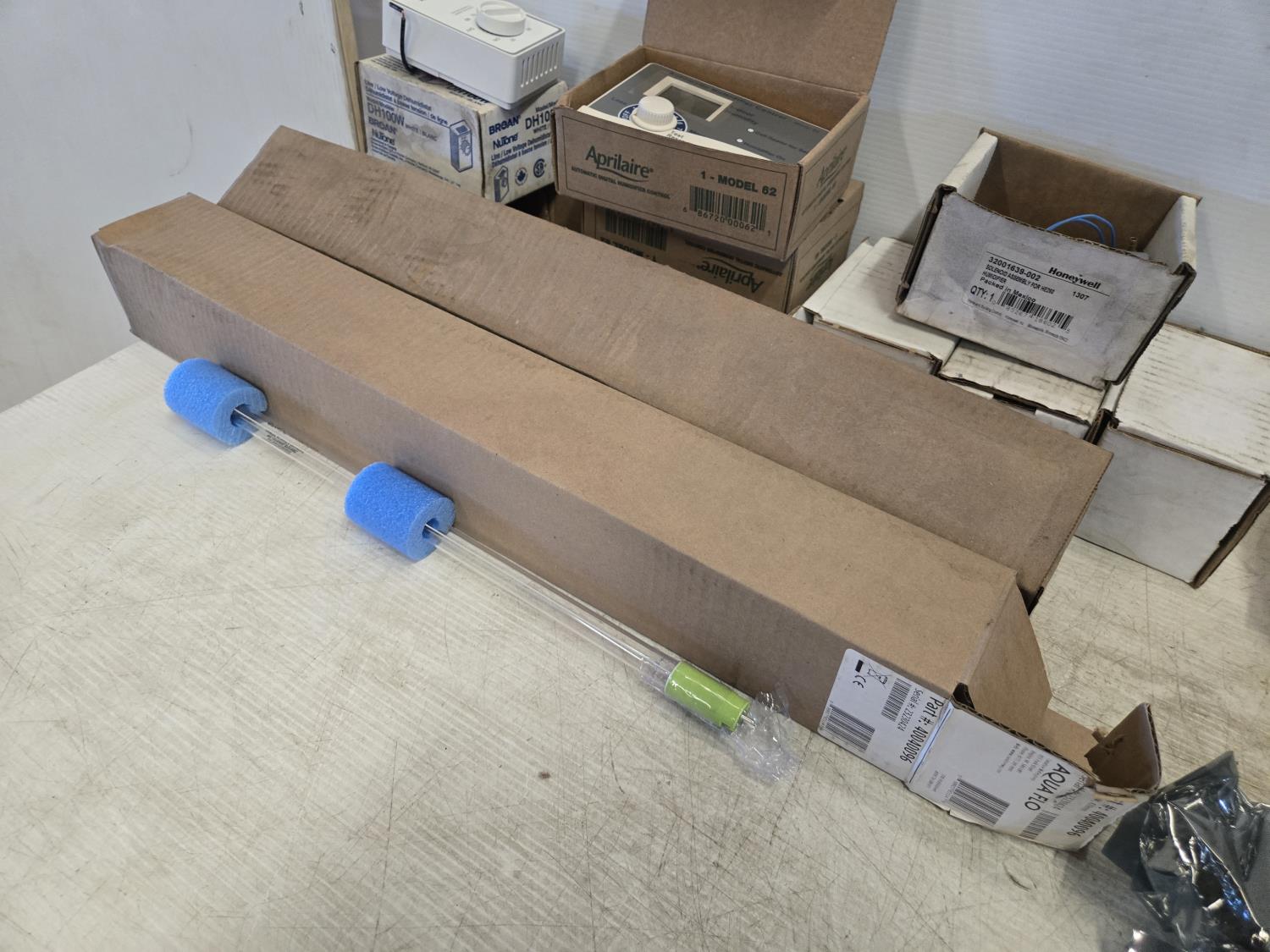 (4) humidifier solenoids, (5) wall thermostats, (2) 40040096 tube bulbs, (1) 5V68029 recirculation damper, (2) circuit boards part #'s 463170, 1041648R, UVC light system