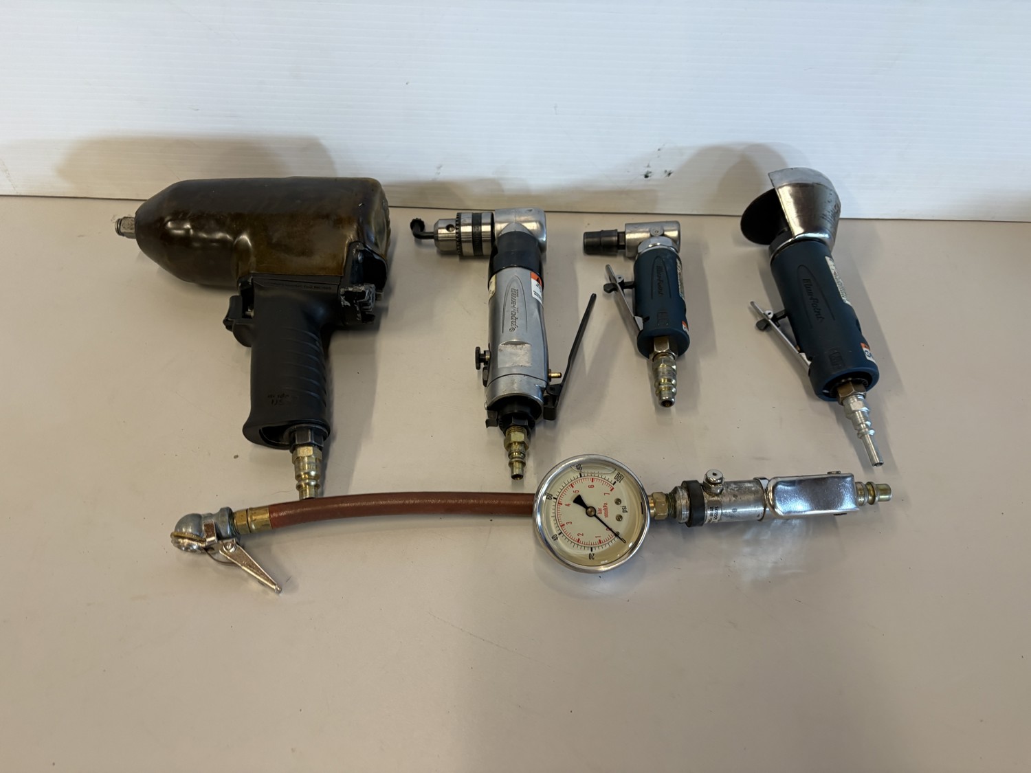 Impact gun, blue point drill, blue point grinders, air check
