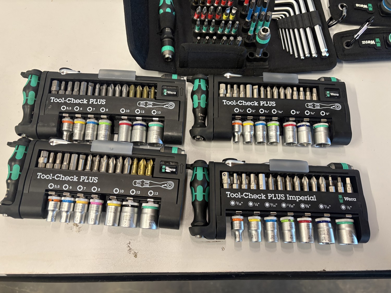 1/4 inch ratchet sets, screwdriver sets, metric sockets, adjustable wrenches, combo kits