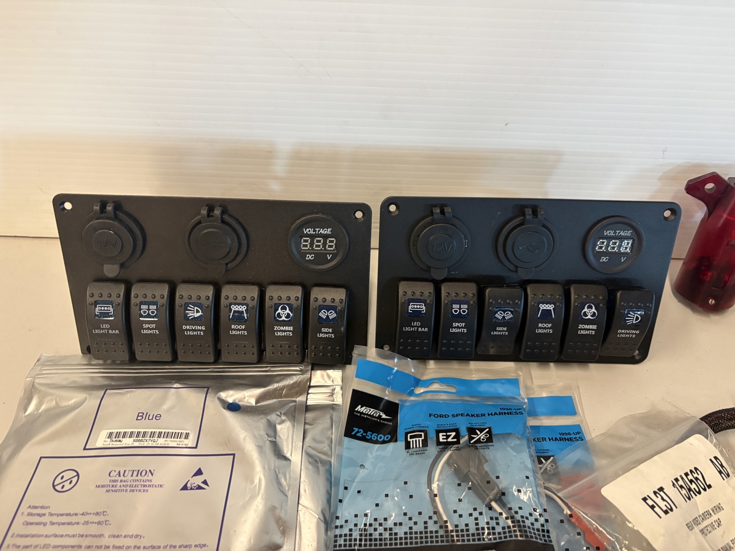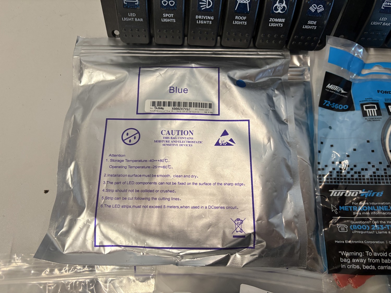 Tire repair kit, aux switches, LED light strips