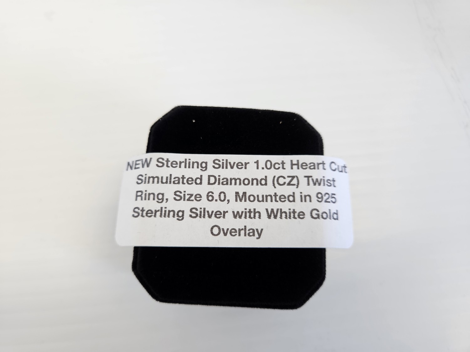 7047 Sterling Silver 1.0Ct Heart Cut Simulated Diamond Twist Ring Size 6.0