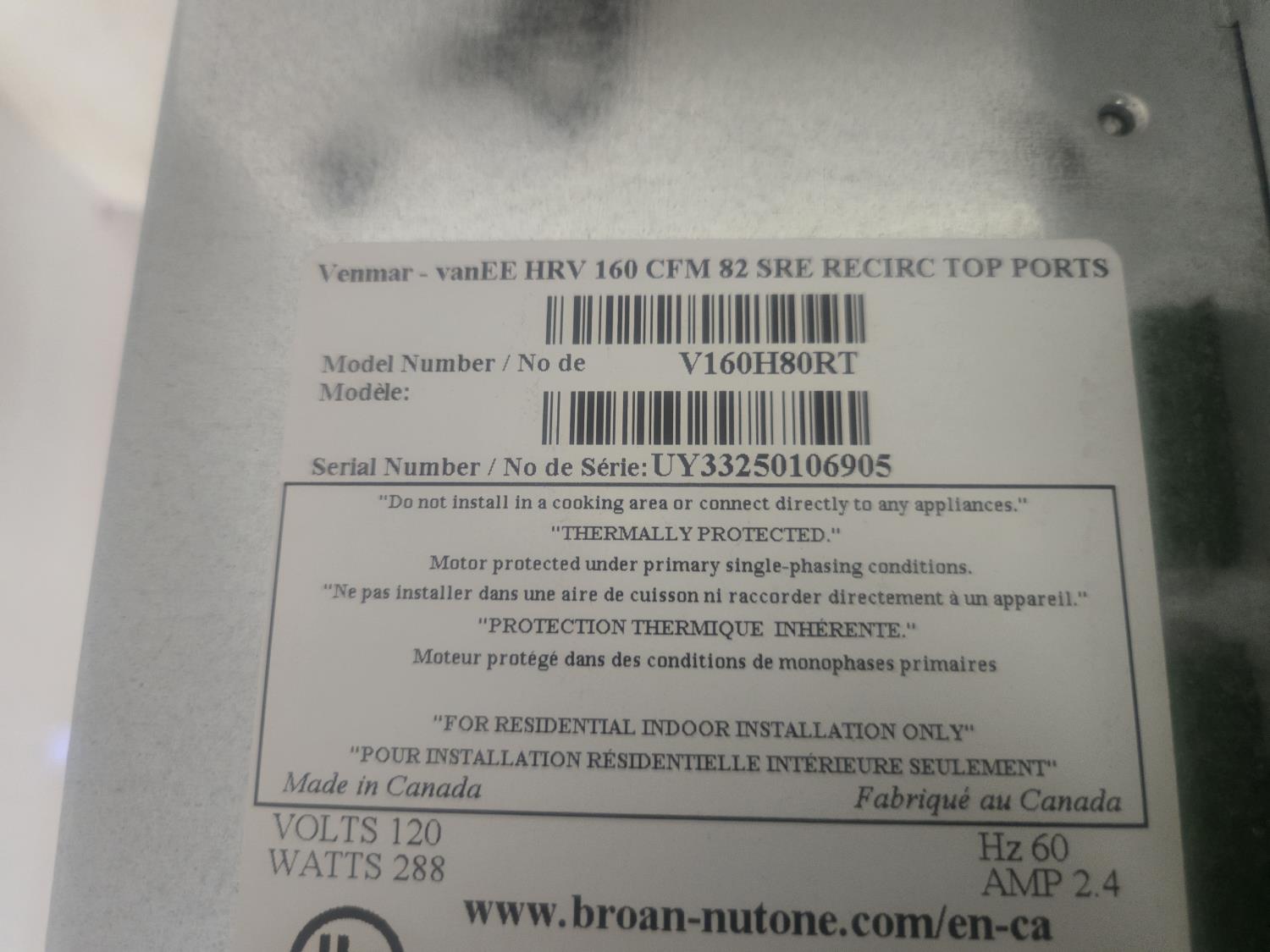 Venmar V160HSORT Air Exchanger