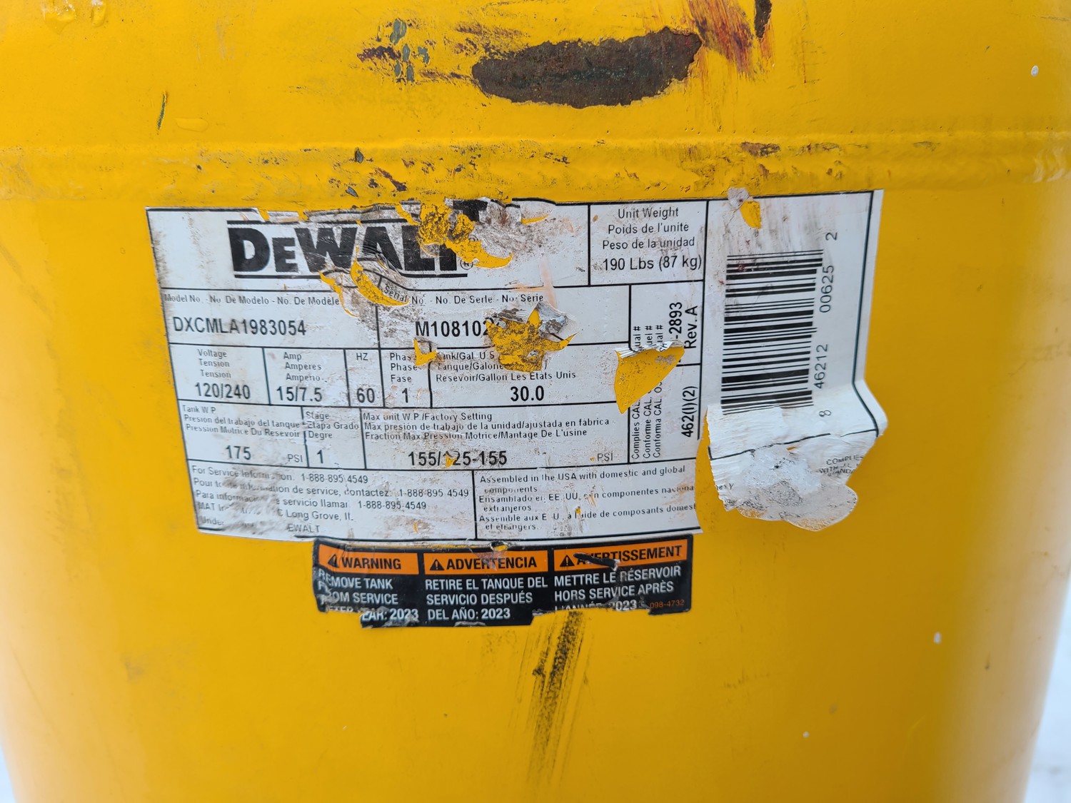 DeWalt- 30 gallon, 175PSI, 120V