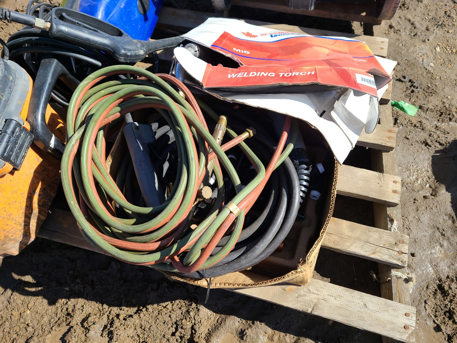 (1) DeWalt tool box, (1) Simoniz s1600 pressure washer, (1) Ridgid professional 4 gallon vacuum, (1) Mig welding cable