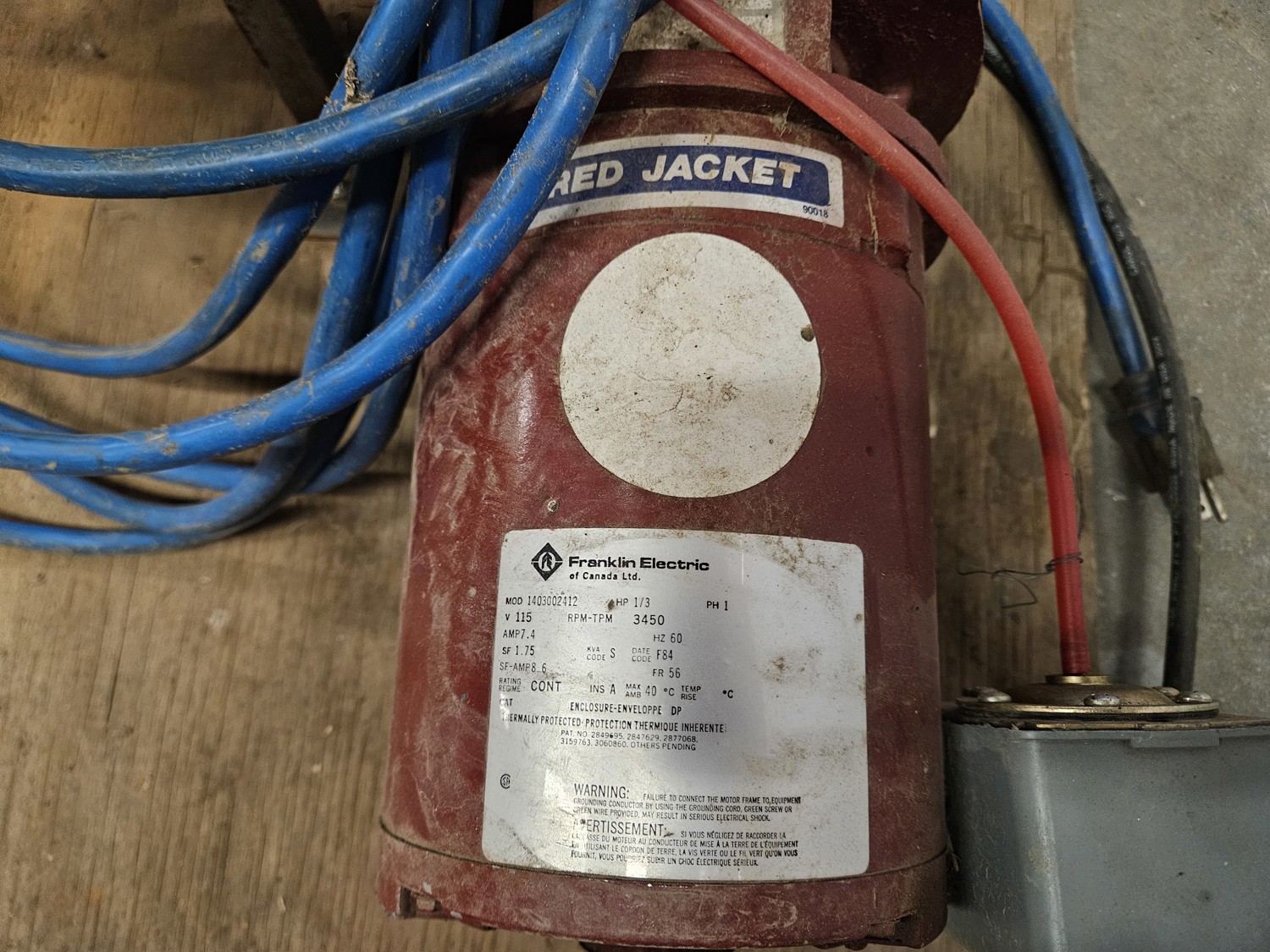 1/3 HP red jacket electric motor, 1 phase, holding tank