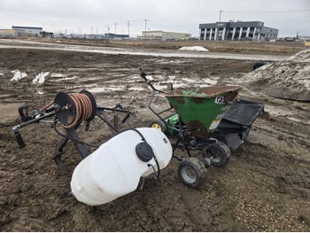 John Deere Towable Sweeper, Frontier Towable Broadcaster & Sprayer Tank