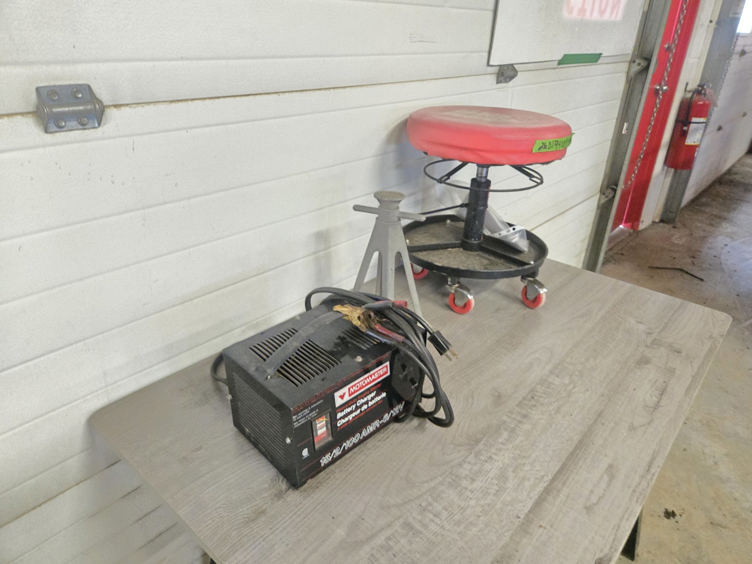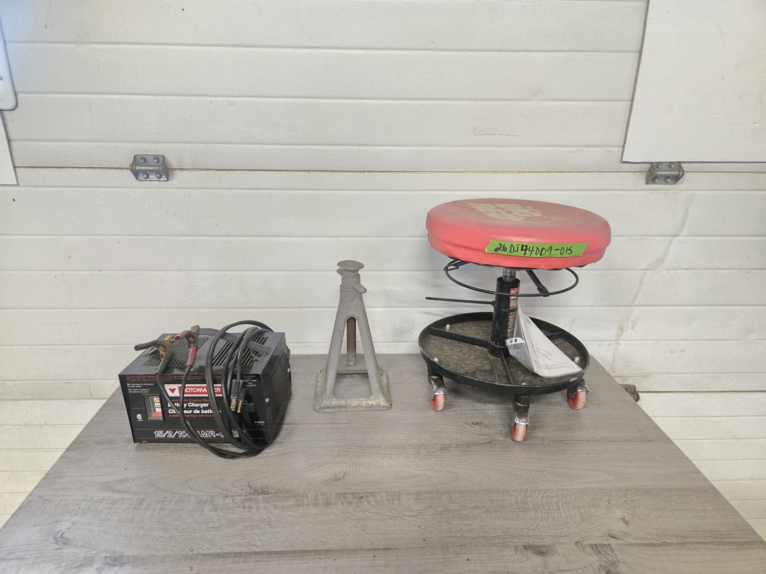 Mechanics Rolling Stool, Motomaster Charger, Small Stand