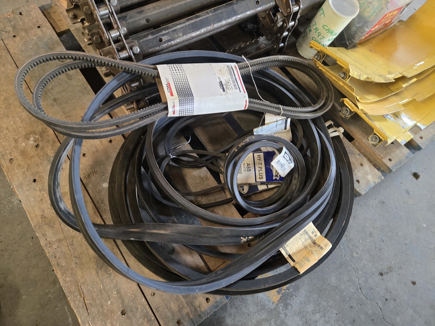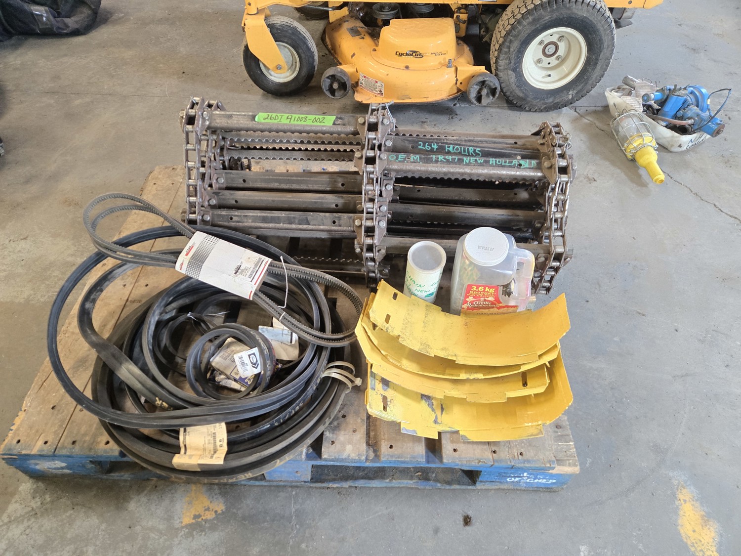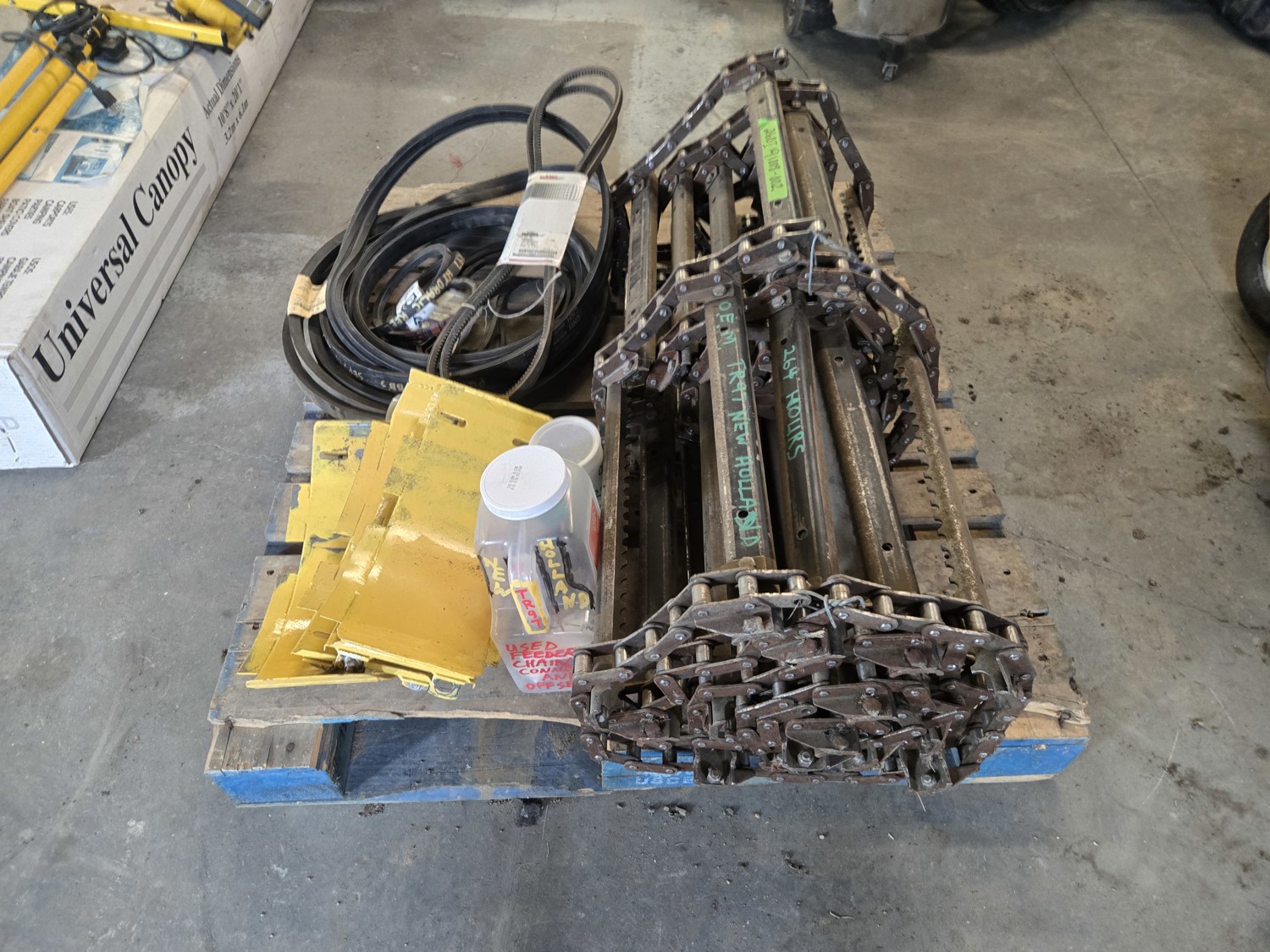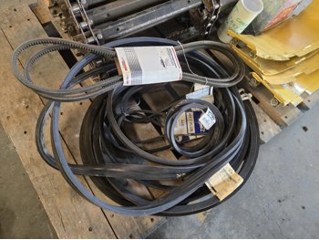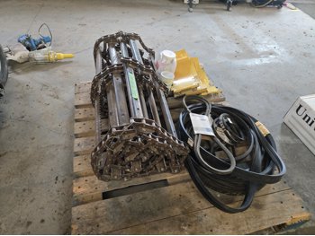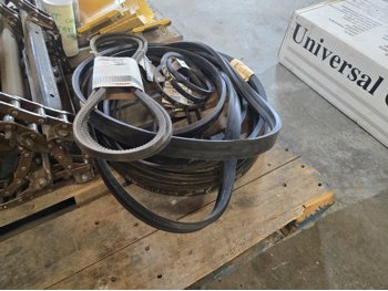 feeder chain with 268 hrs, elevator bottom inspection covers, qty of various unused belts
