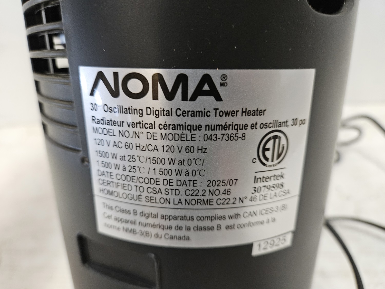 Noma 30 Inch Oscillating Digital Ceramic Tower Heater
