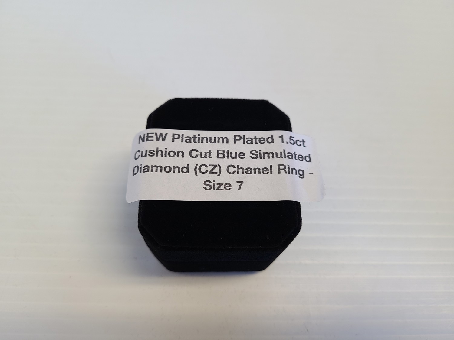 Platinum Plated 1.5 Blue Chanel Ring (Unused)