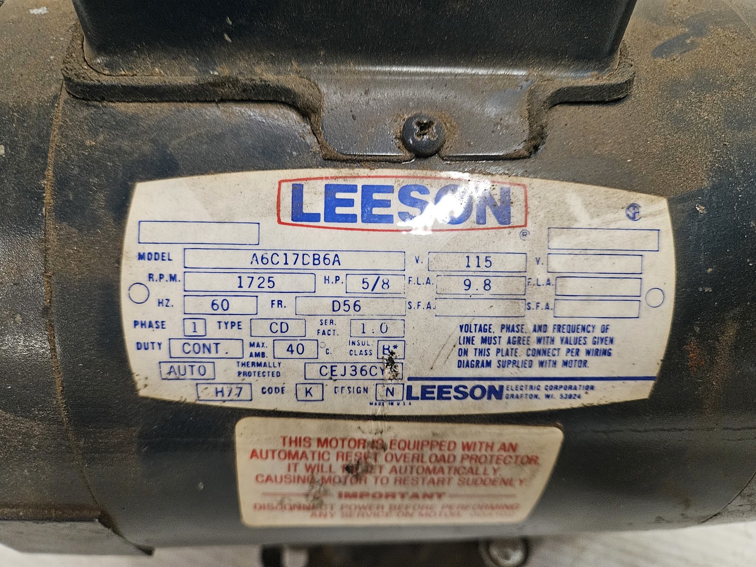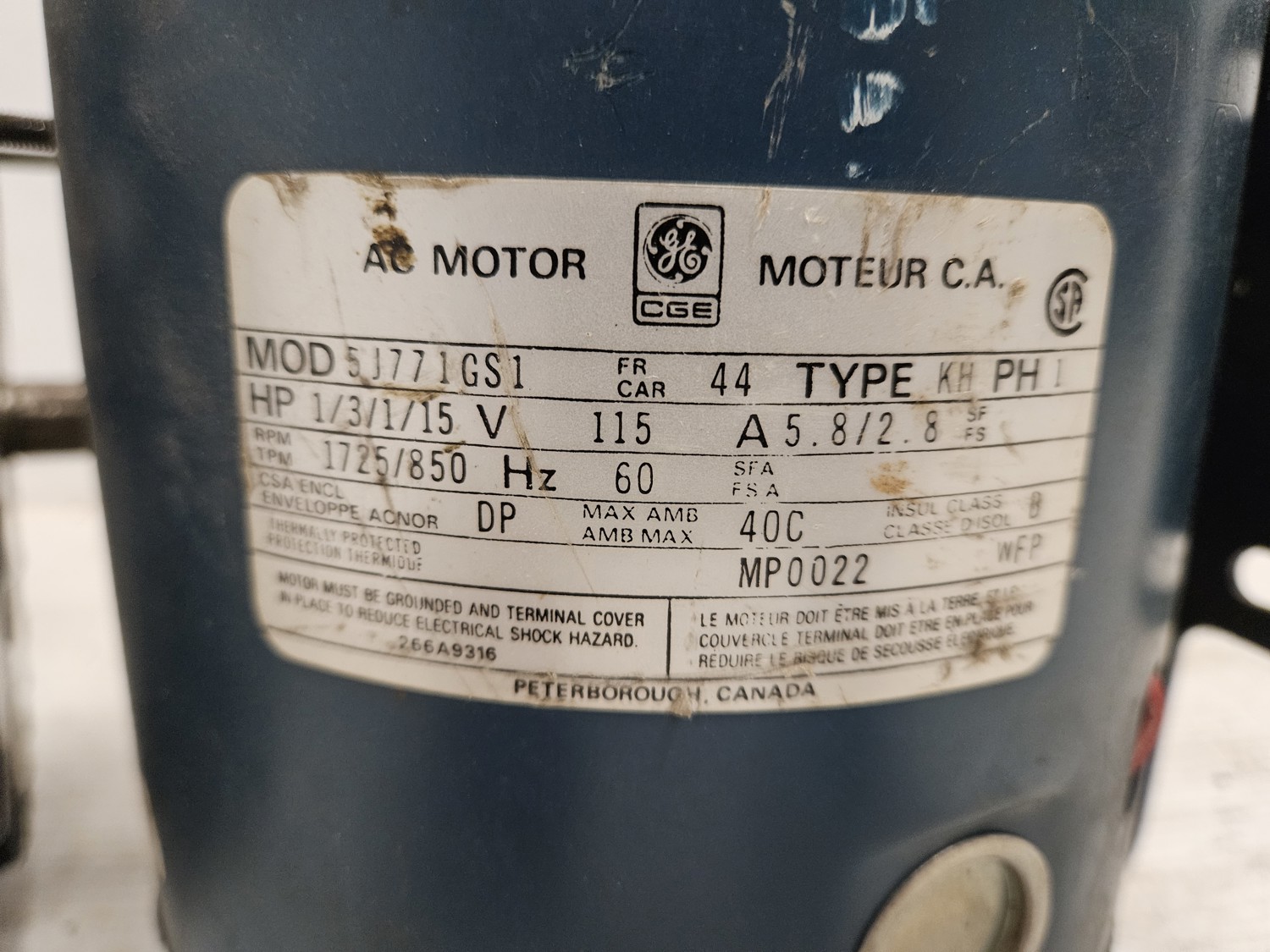 Leeson 5/8 HP, 115 v, 1 phase, GE 1/3/1/15 HP, 115 v, 1 phase
