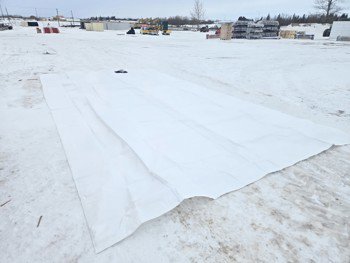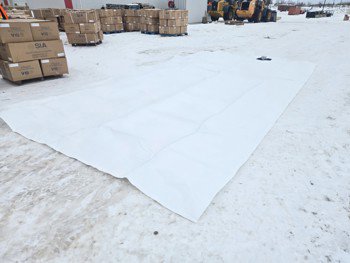 with ball valve with retention plate, bag measures 12 ft wide X 22 ft 8 inch long