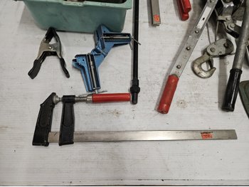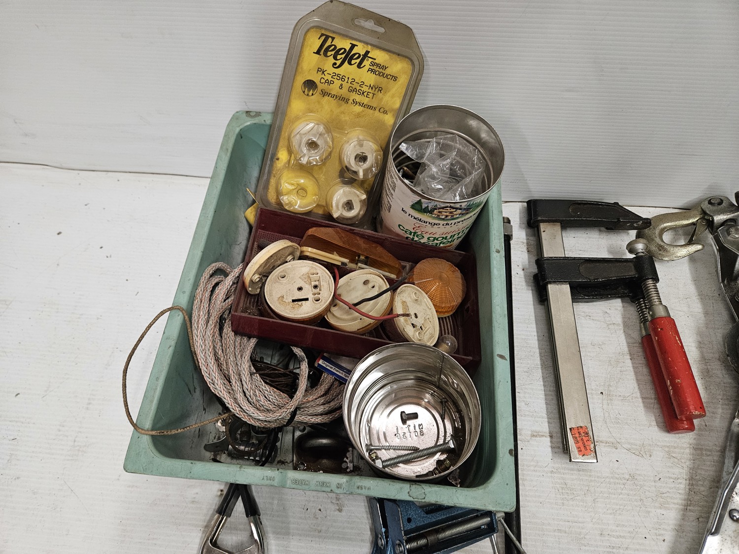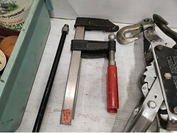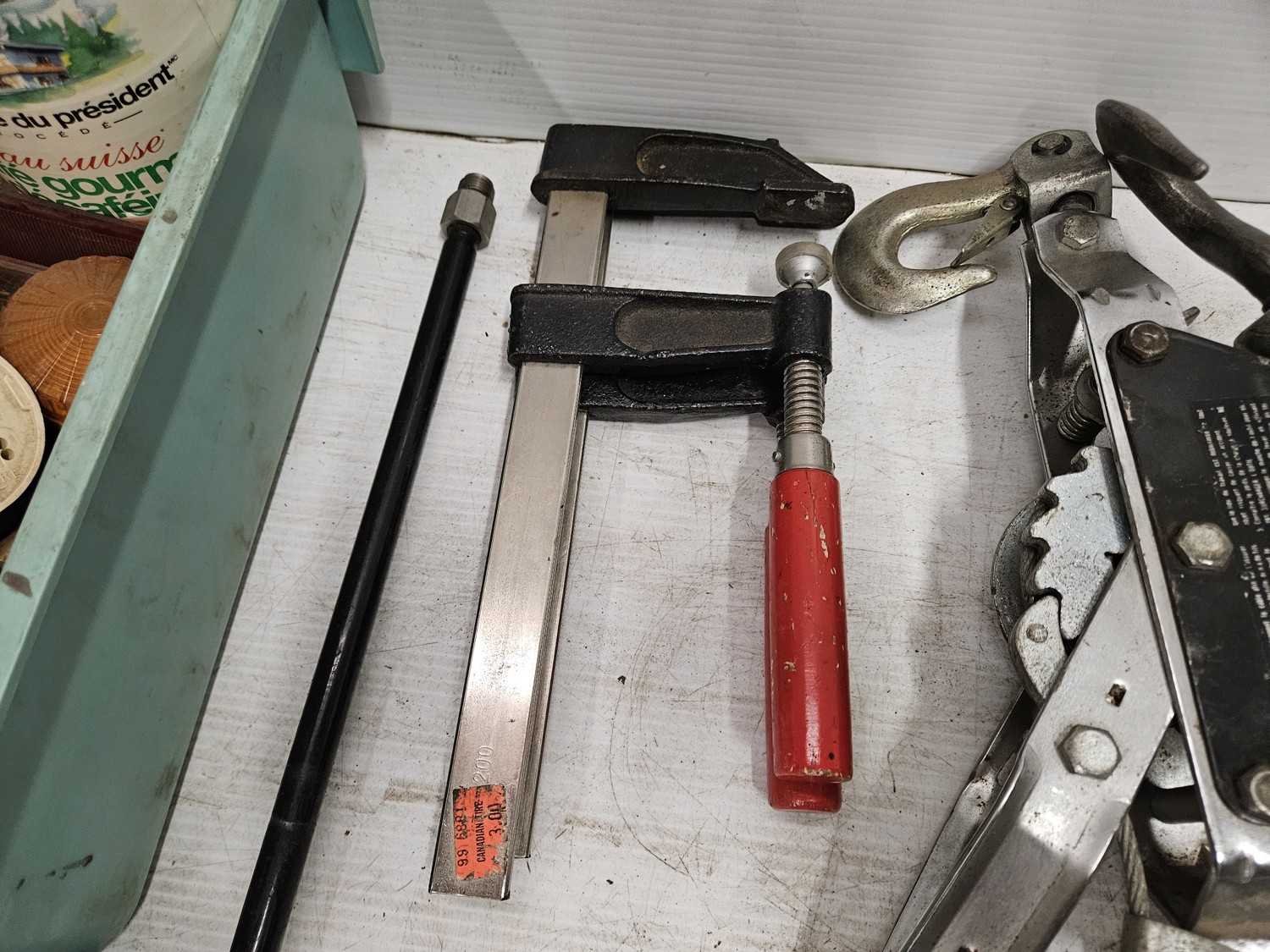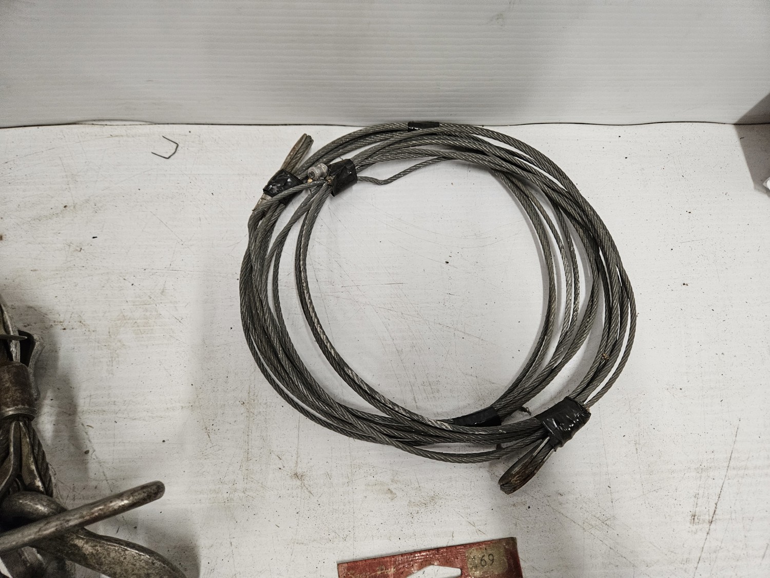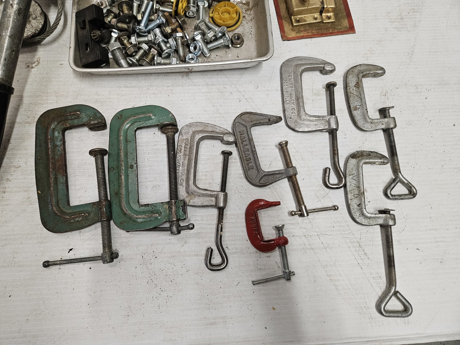 (2) come a-longs, c-clamps, cable, clamps, screws, nuts, bolts