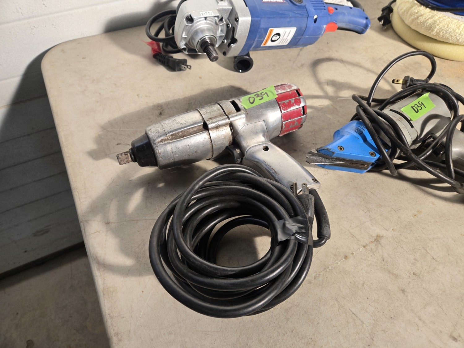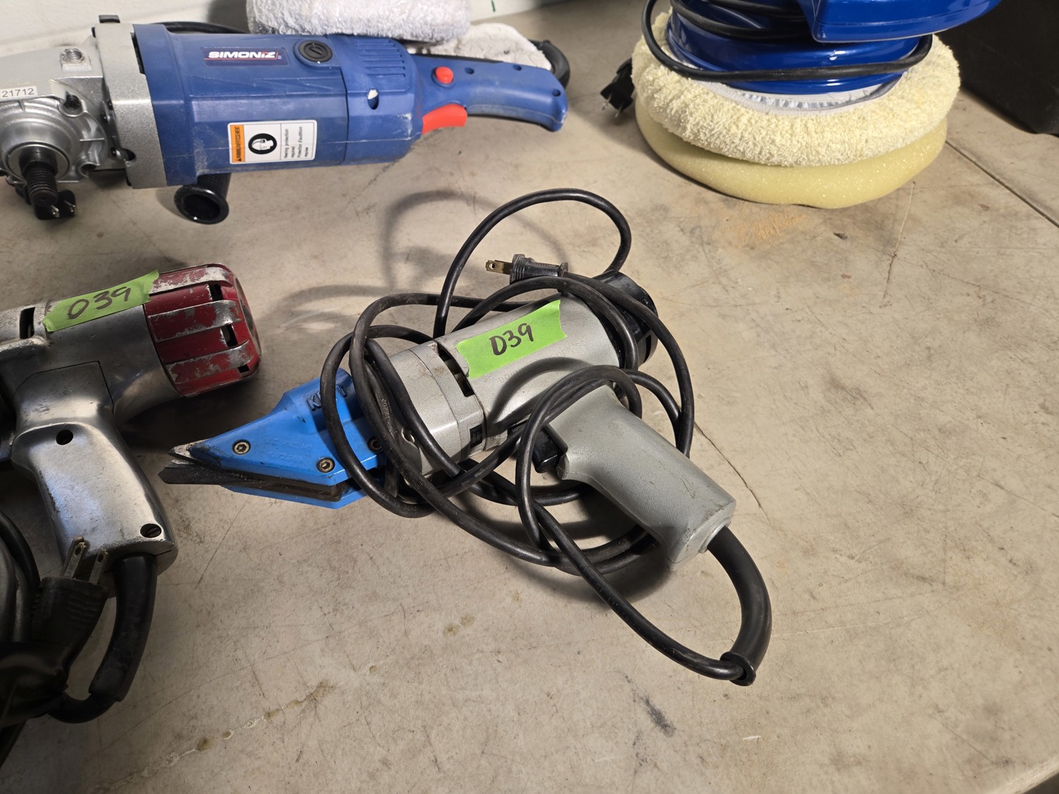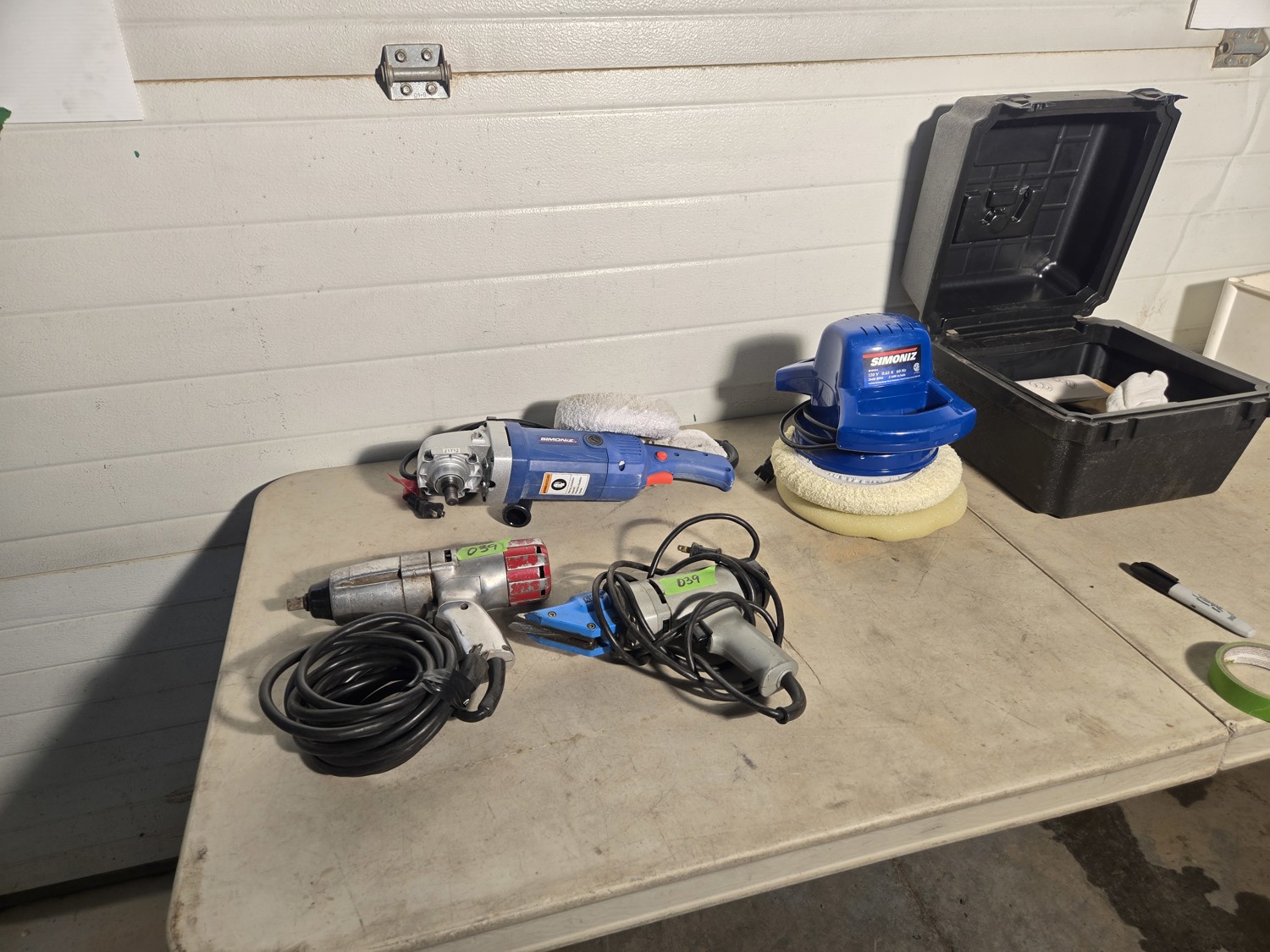 (1) Simoniz angle polisher, (1) Simoniz polisher, (1) 1/2 impact, (1) metal shear