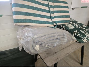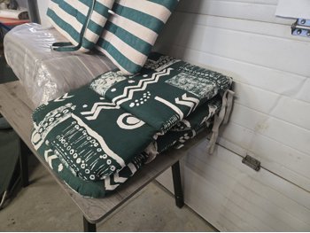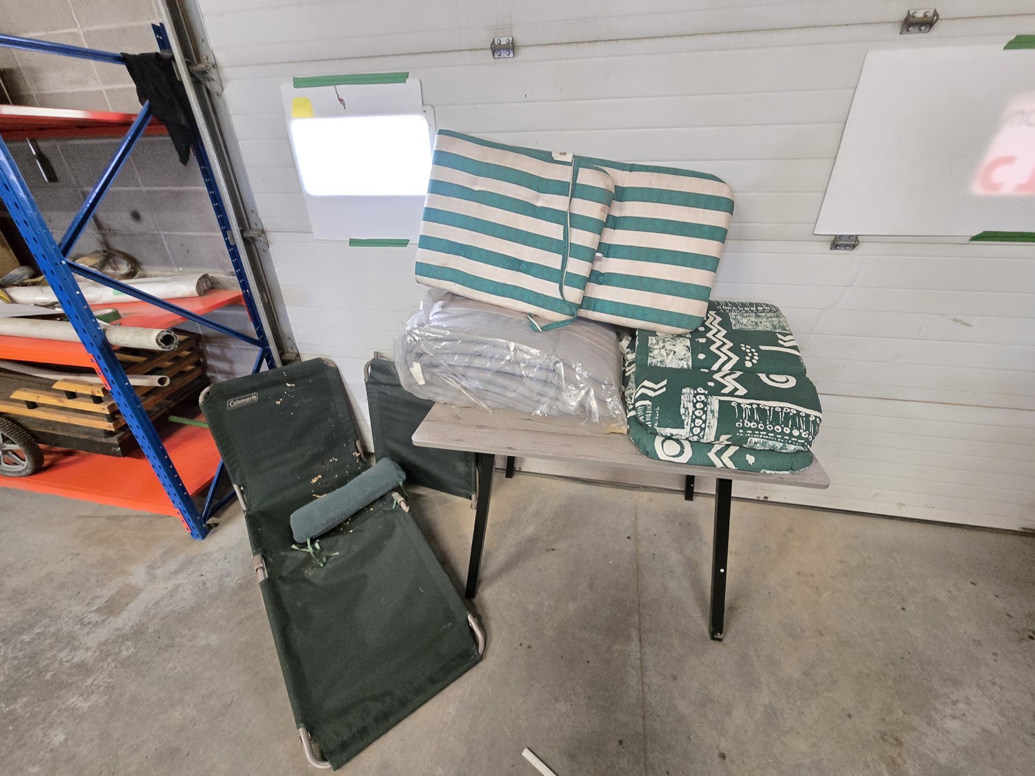 Qty of Patio Cushions, (2) Coleman Lounging Chairs