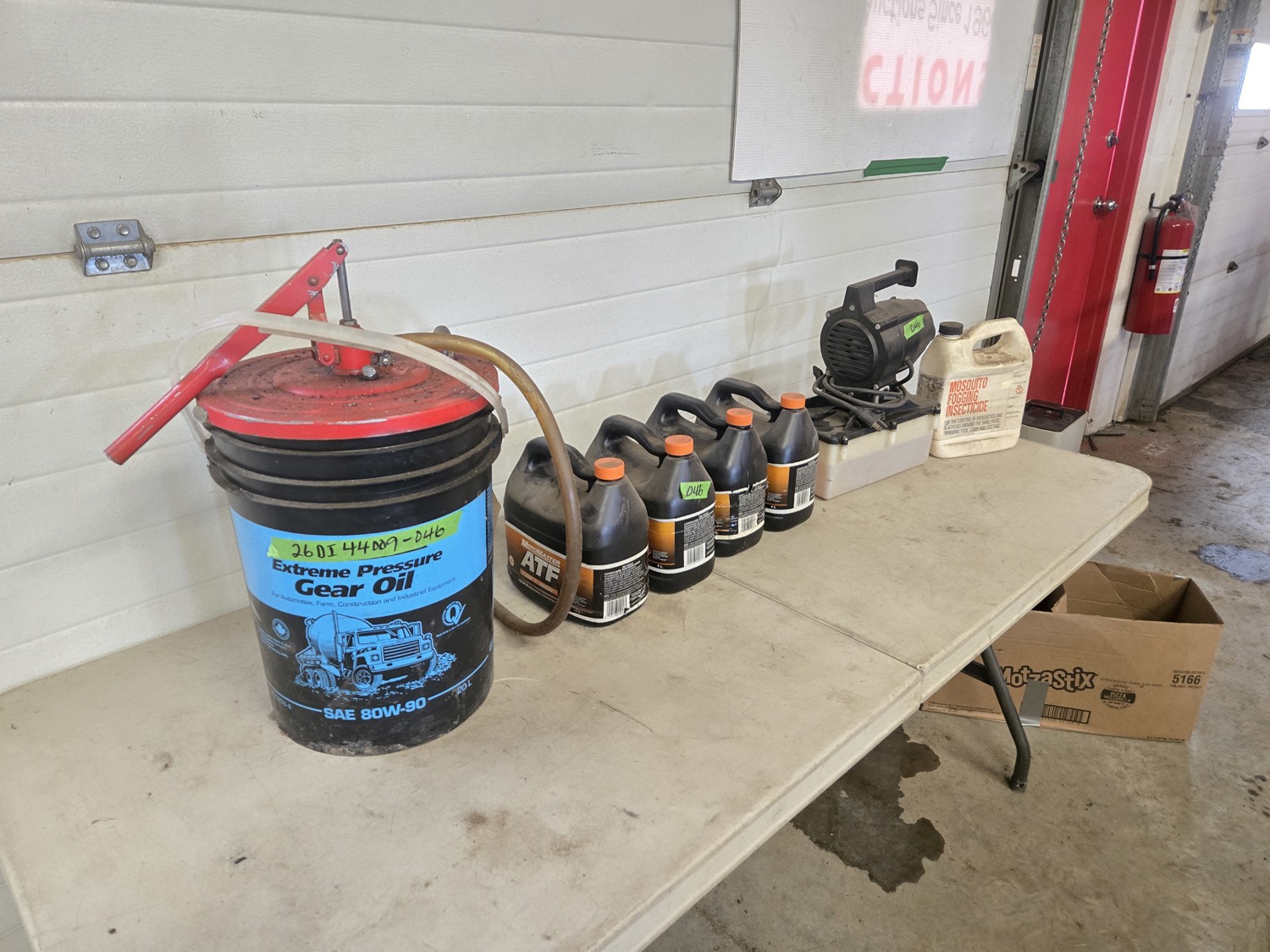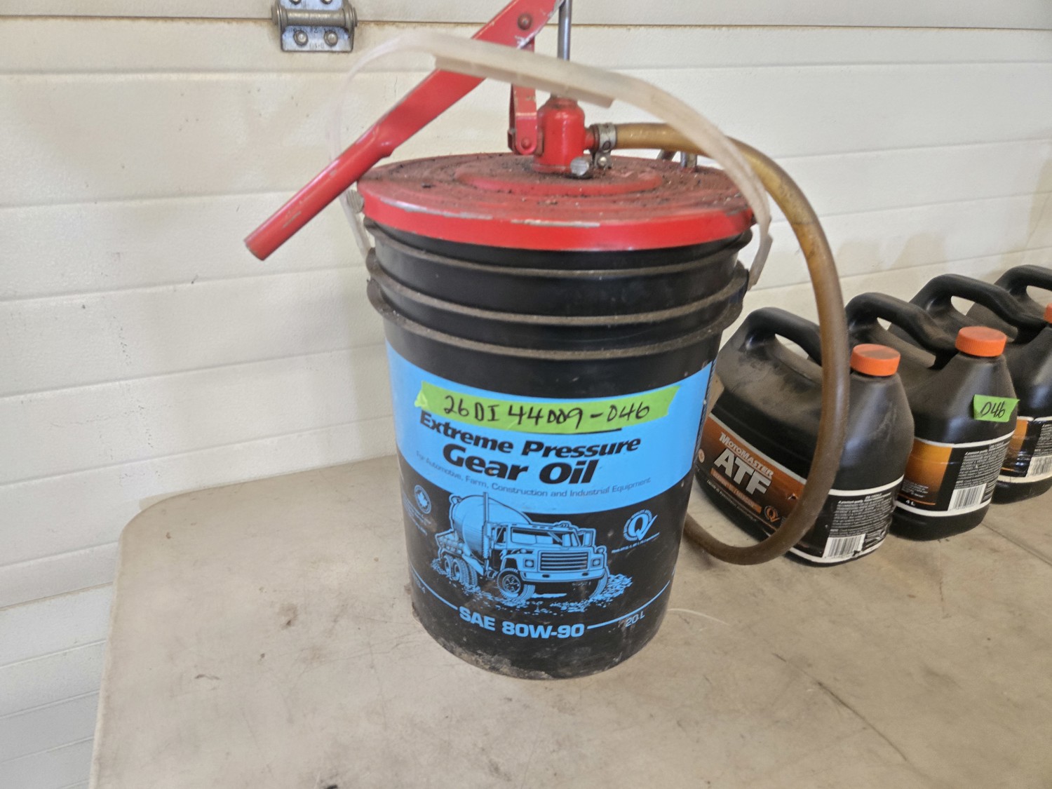 (2) 4 liter unopened ATF, (2) part jugs of ATF, (1) part pump pail of 80W90 gear oil