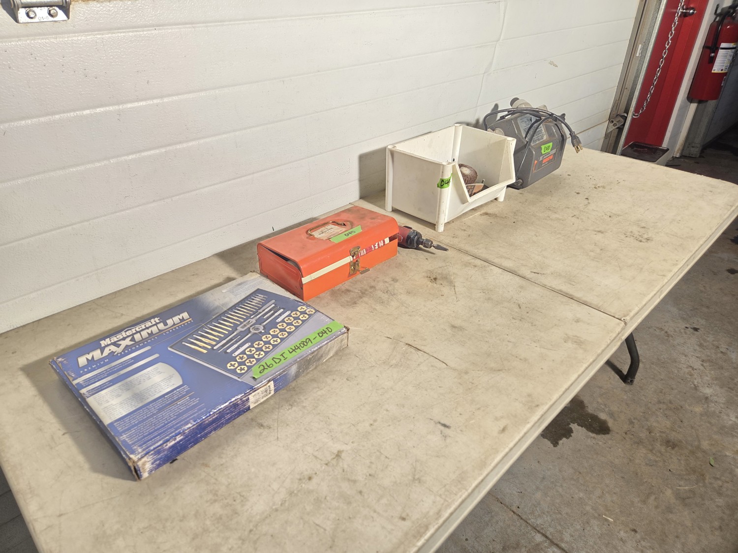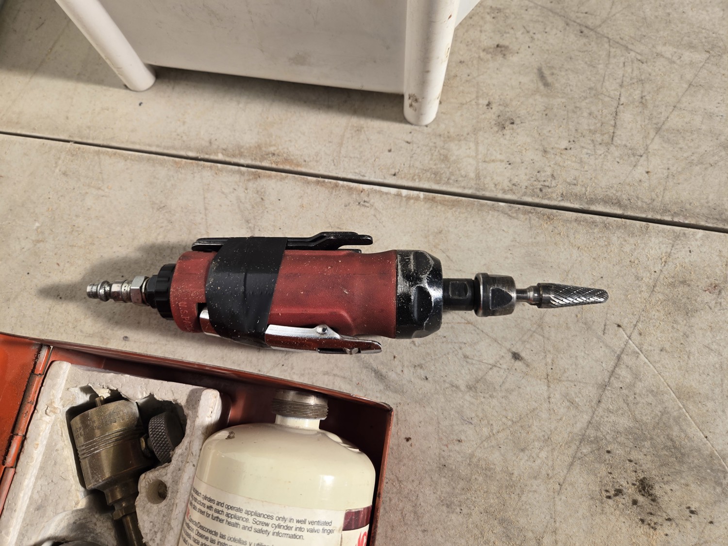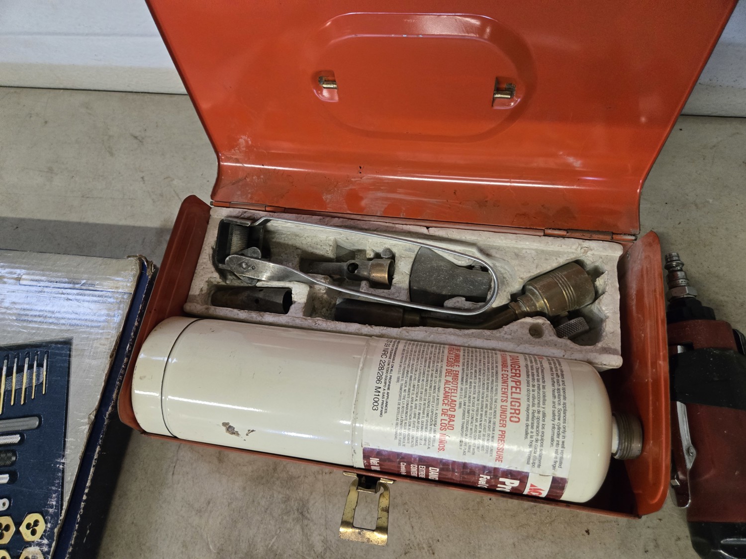 (1) Torch kit, (1) Maxim tap & die set, air die grinder with accessories, Black & Decker drill sharpener