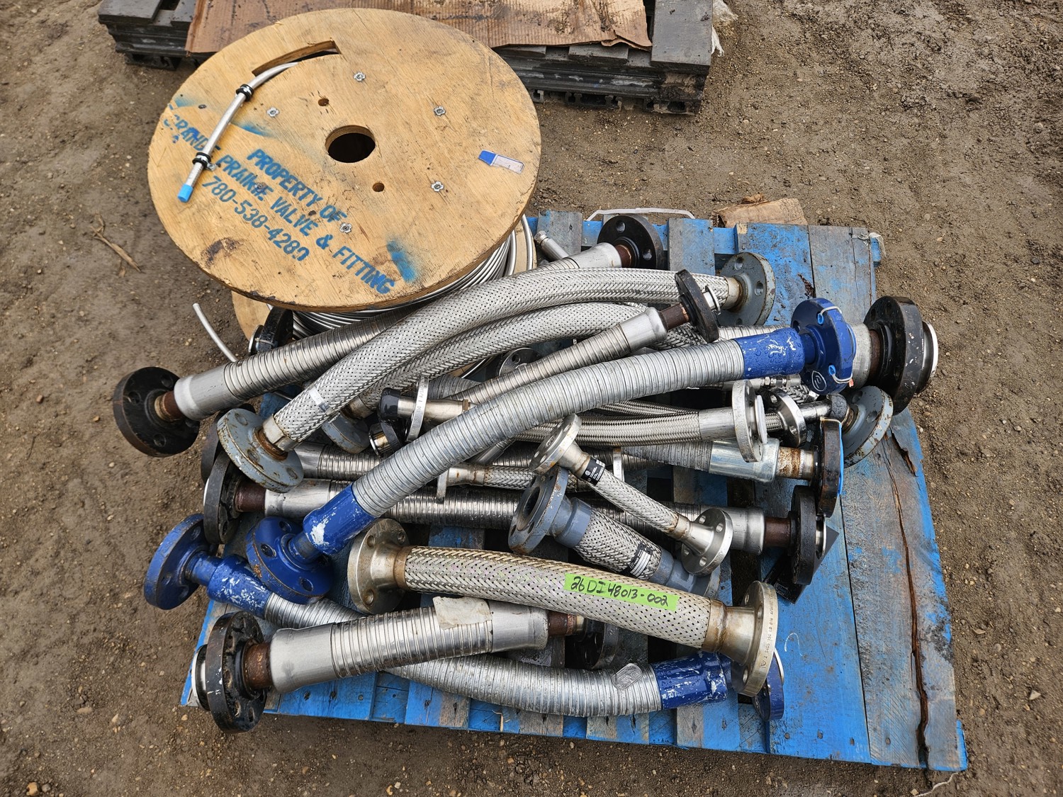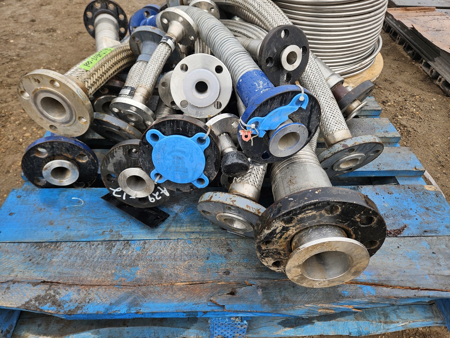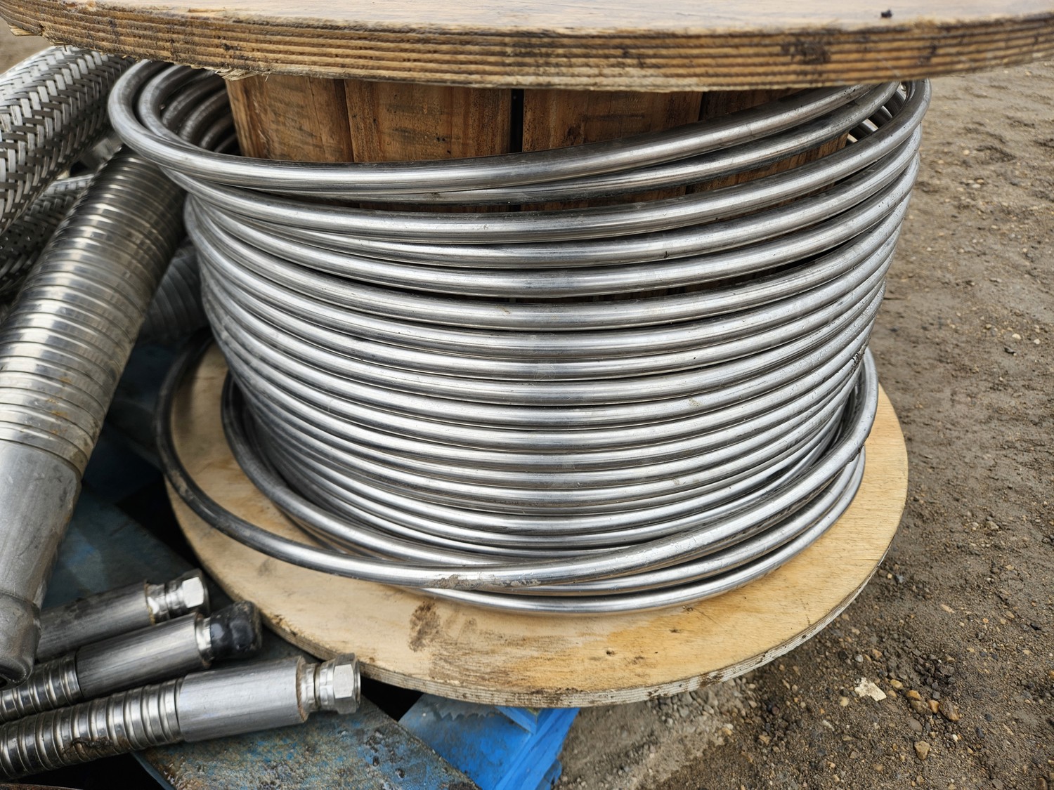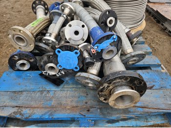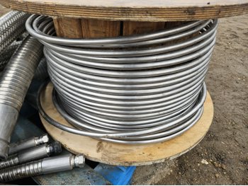 partial roll of stainless steel tubing, qty of flexible connectors 1 inch to 3 inch various lengths