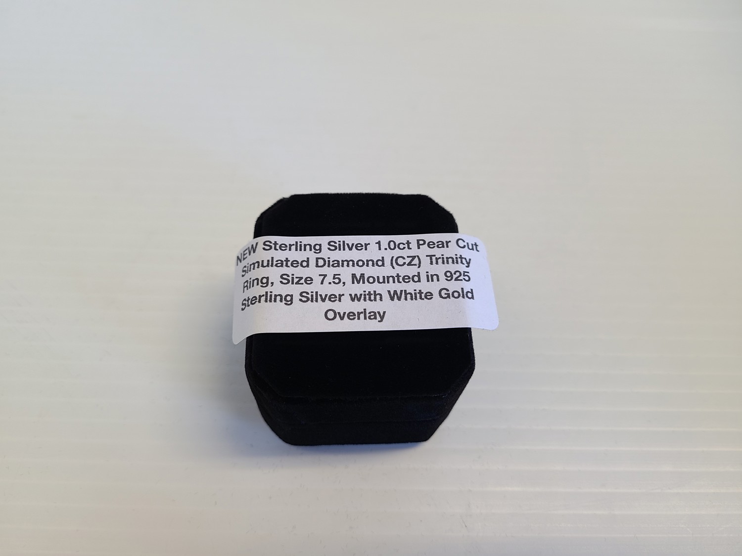 Sterling Silver 1.0Ct Pear Cut Trinity Ring (Unused)