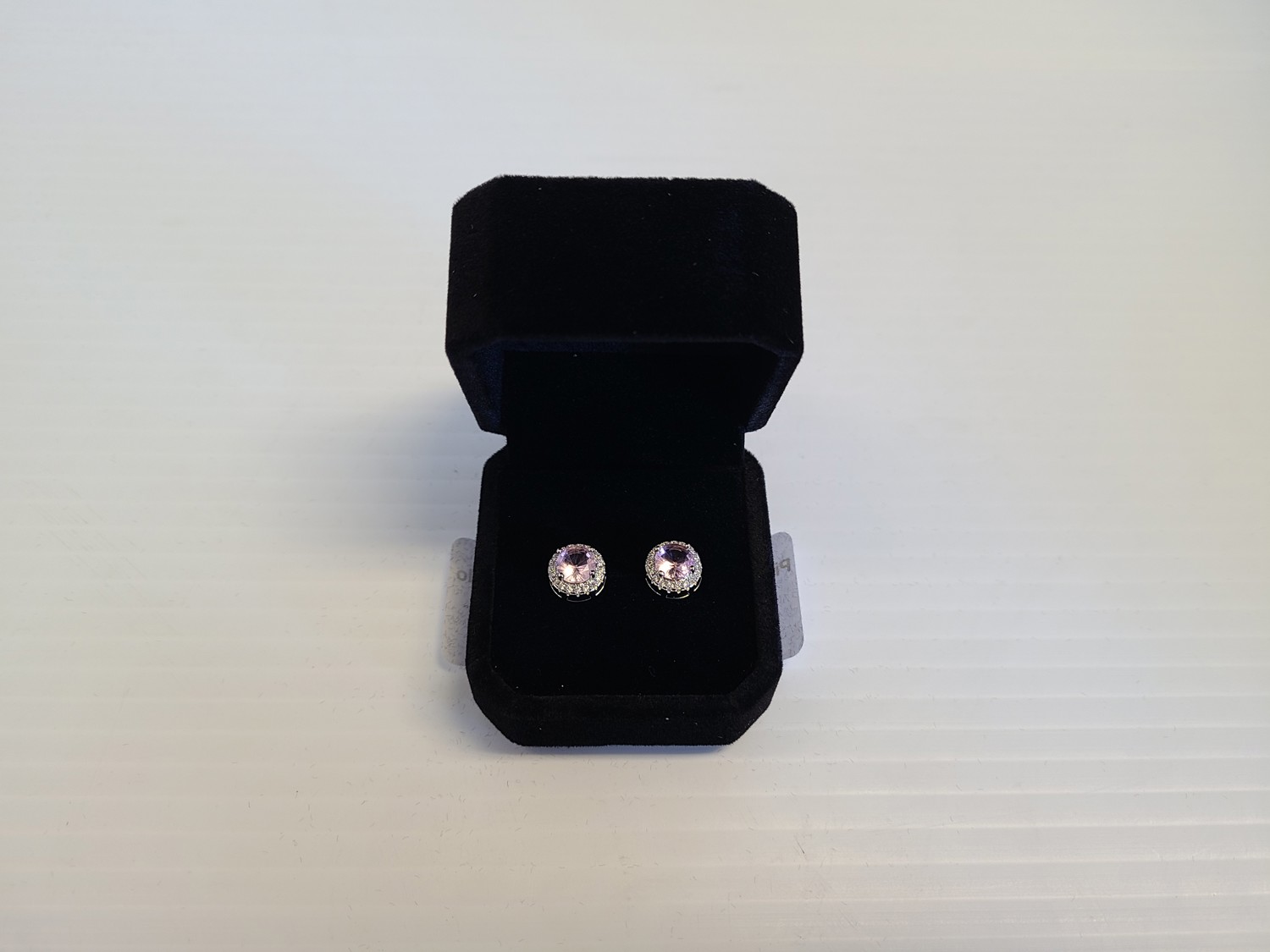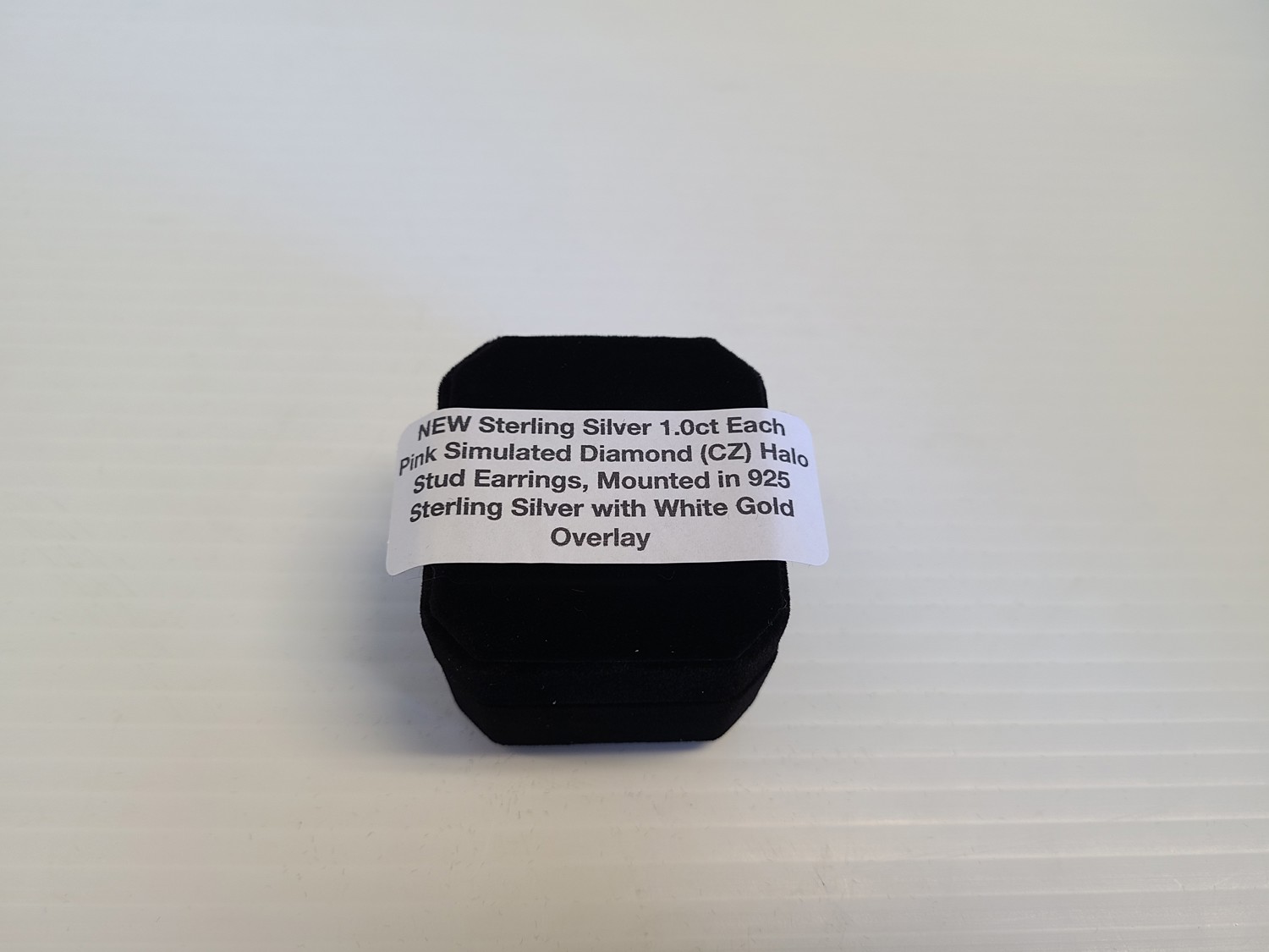 Sterling Silver 1.0Ct Pink Halo Stud Earrings (Unused)
