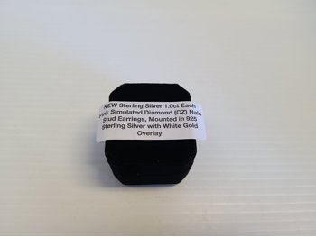each simulated diamond (cz) mounted in 925 sterling silver with white gold overlay