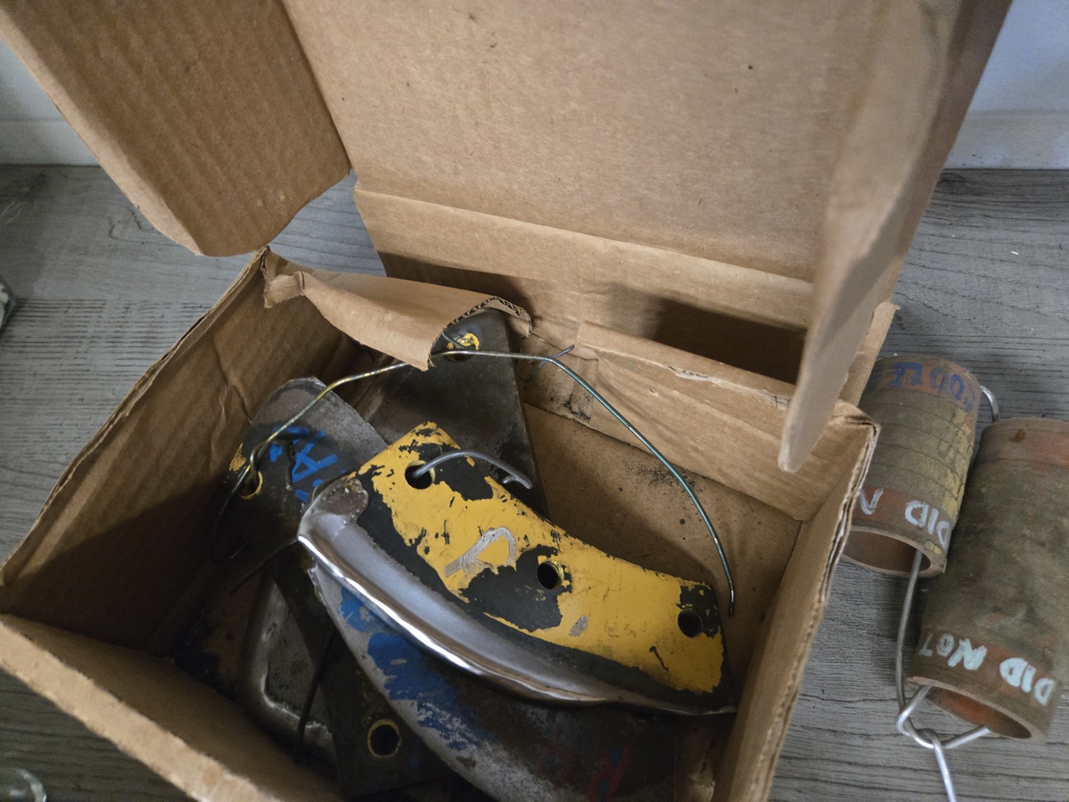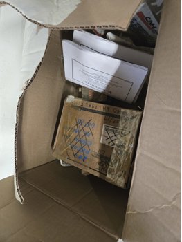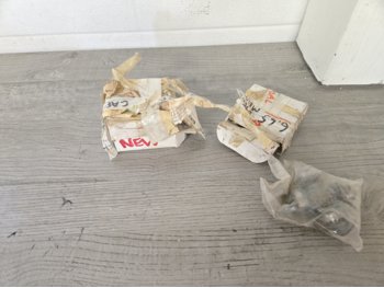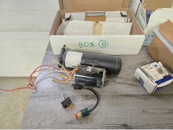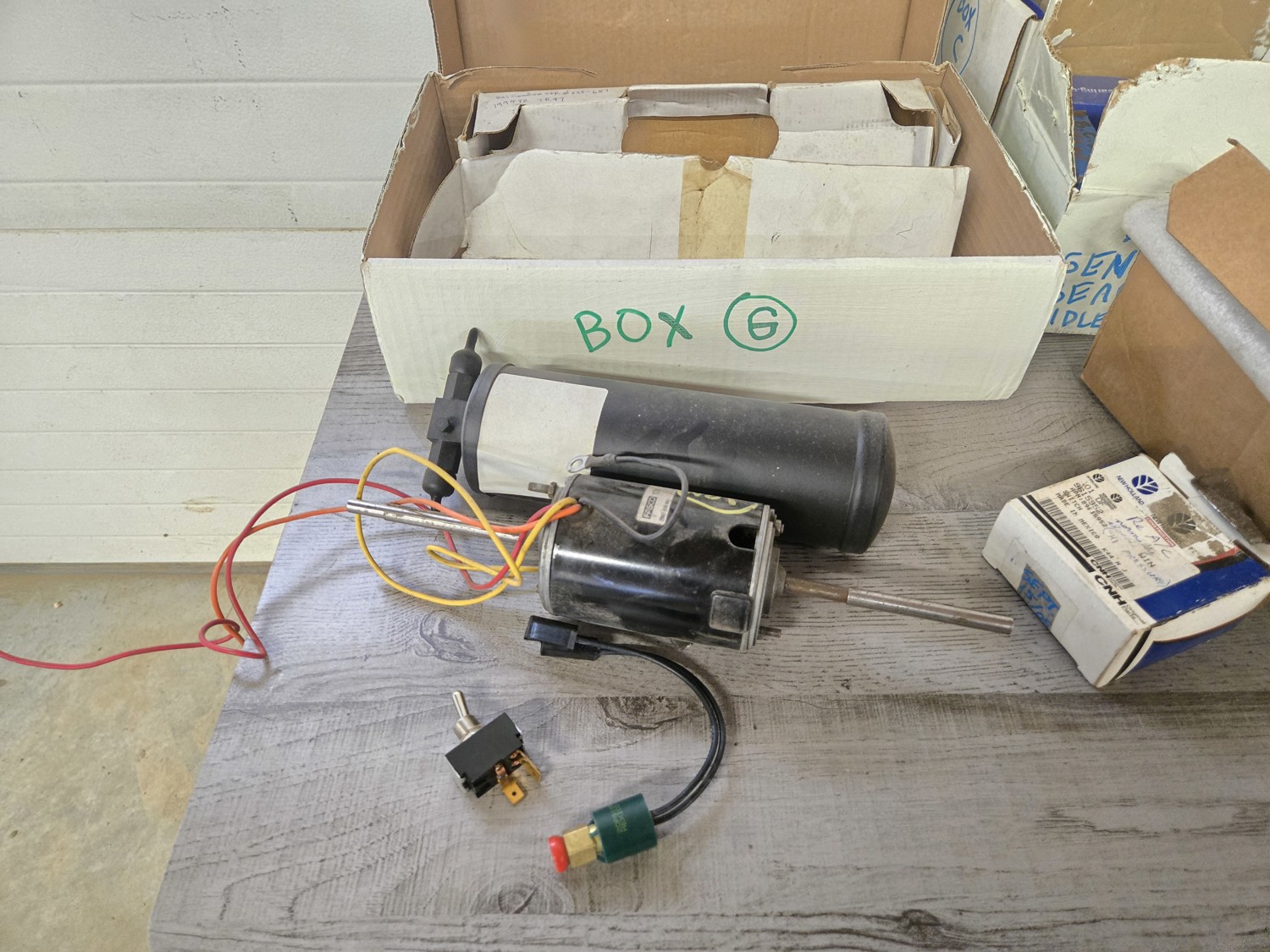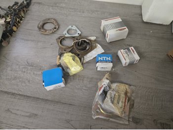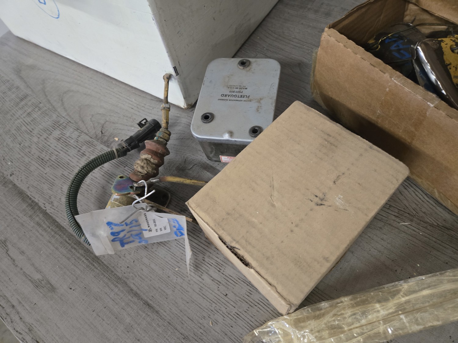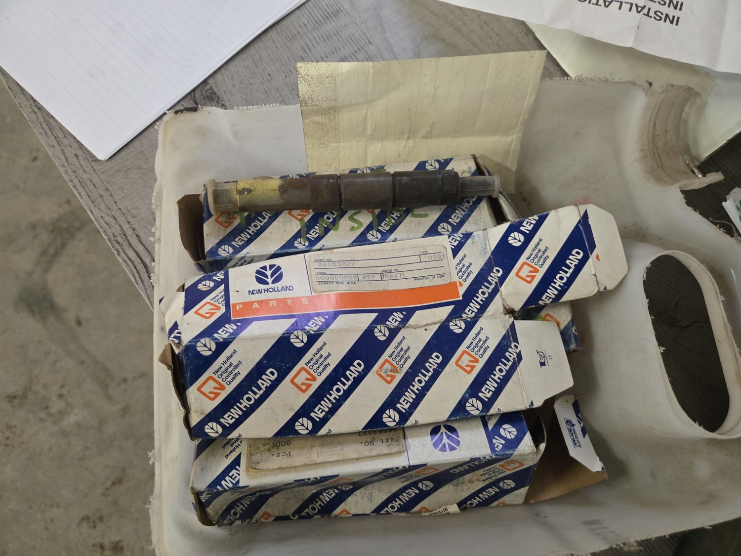 partial box of 50-2 roller chain, qty of bearings and sprockets, fold down beverage tray, spring for Victory pickup, new receiver dryer, fan switches, many other parts to fit TR97 combine, new and used, see pictures
