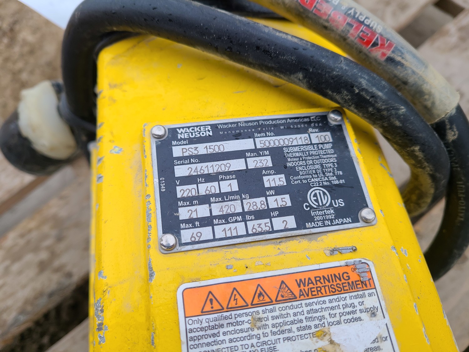 Wacker Neuson PS3 1500 Submersible Pump w/ Multipurpose Oil Hose