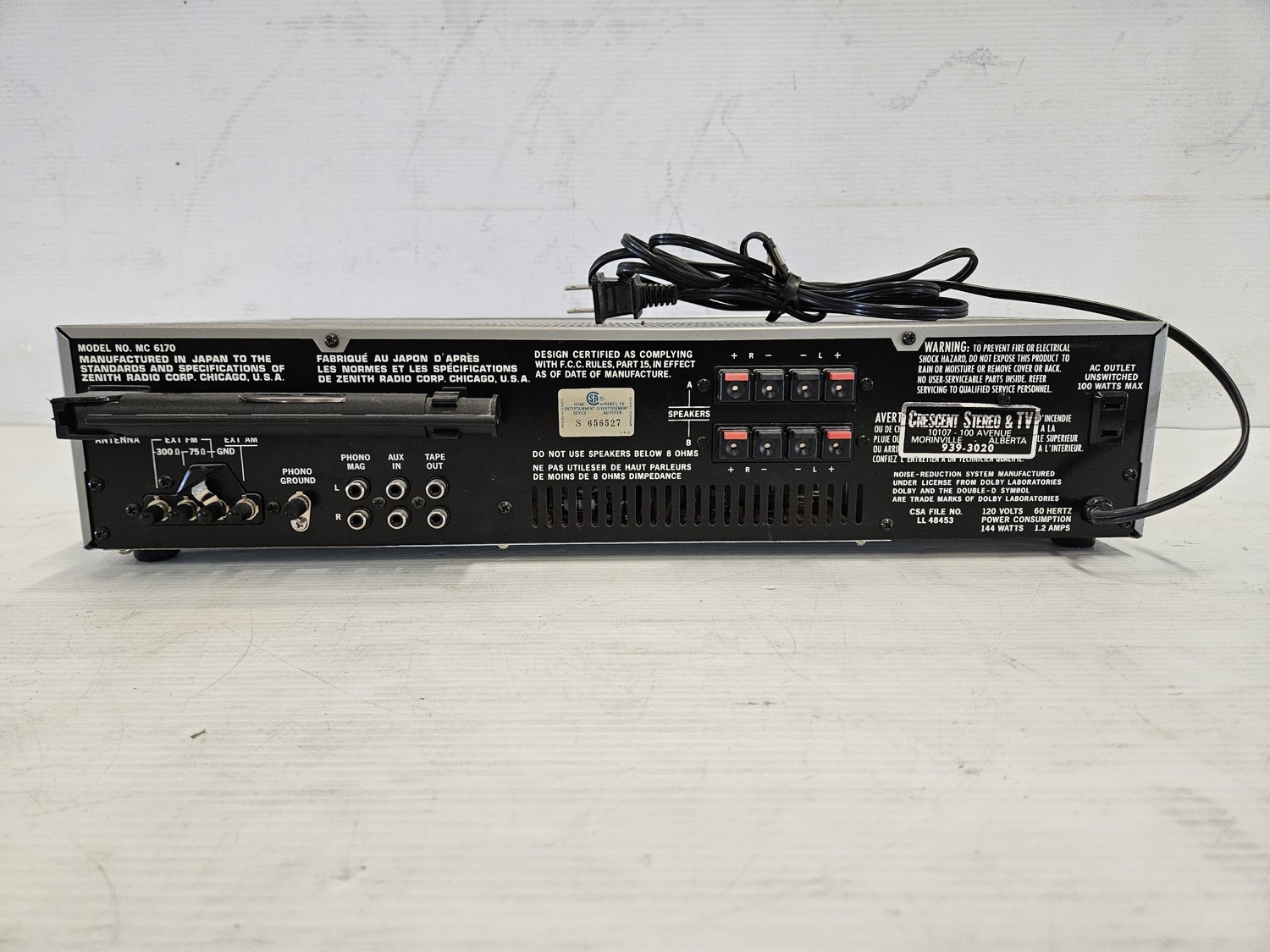 Zenith MC6170-1 Stereo C/W (2) Kenwood Speakers