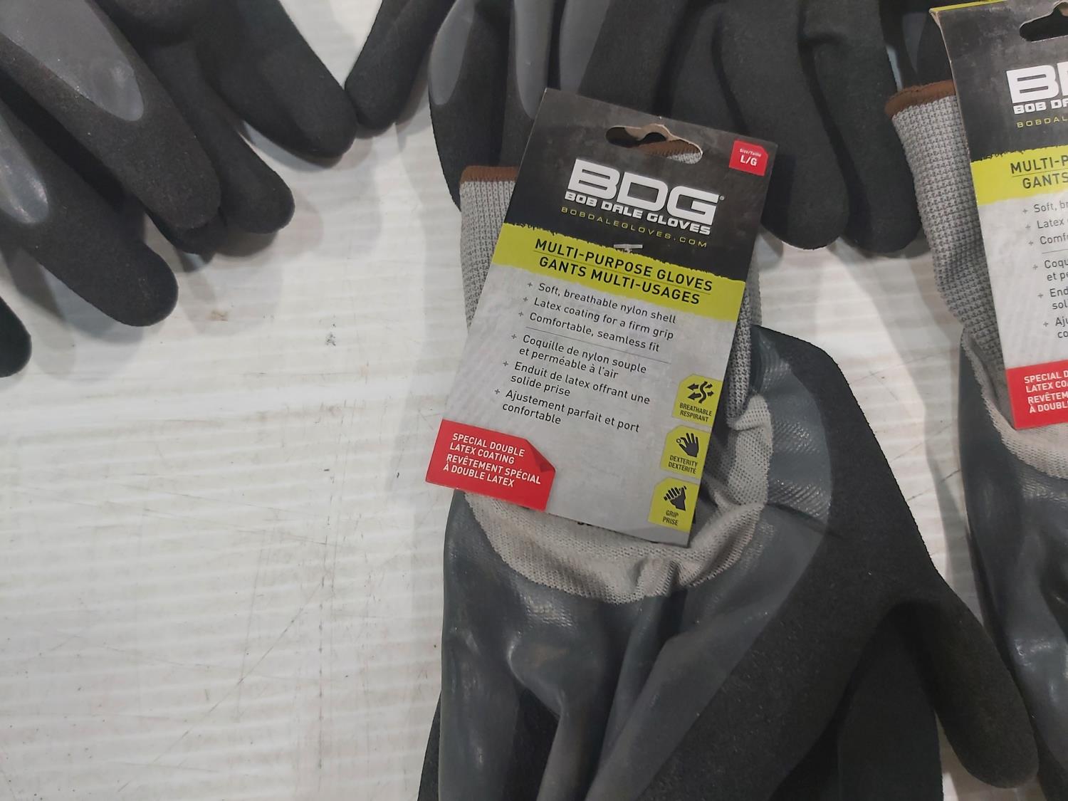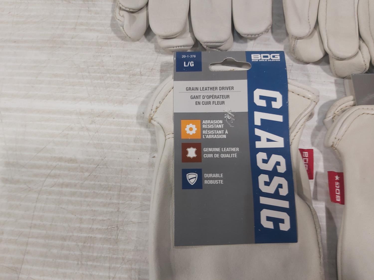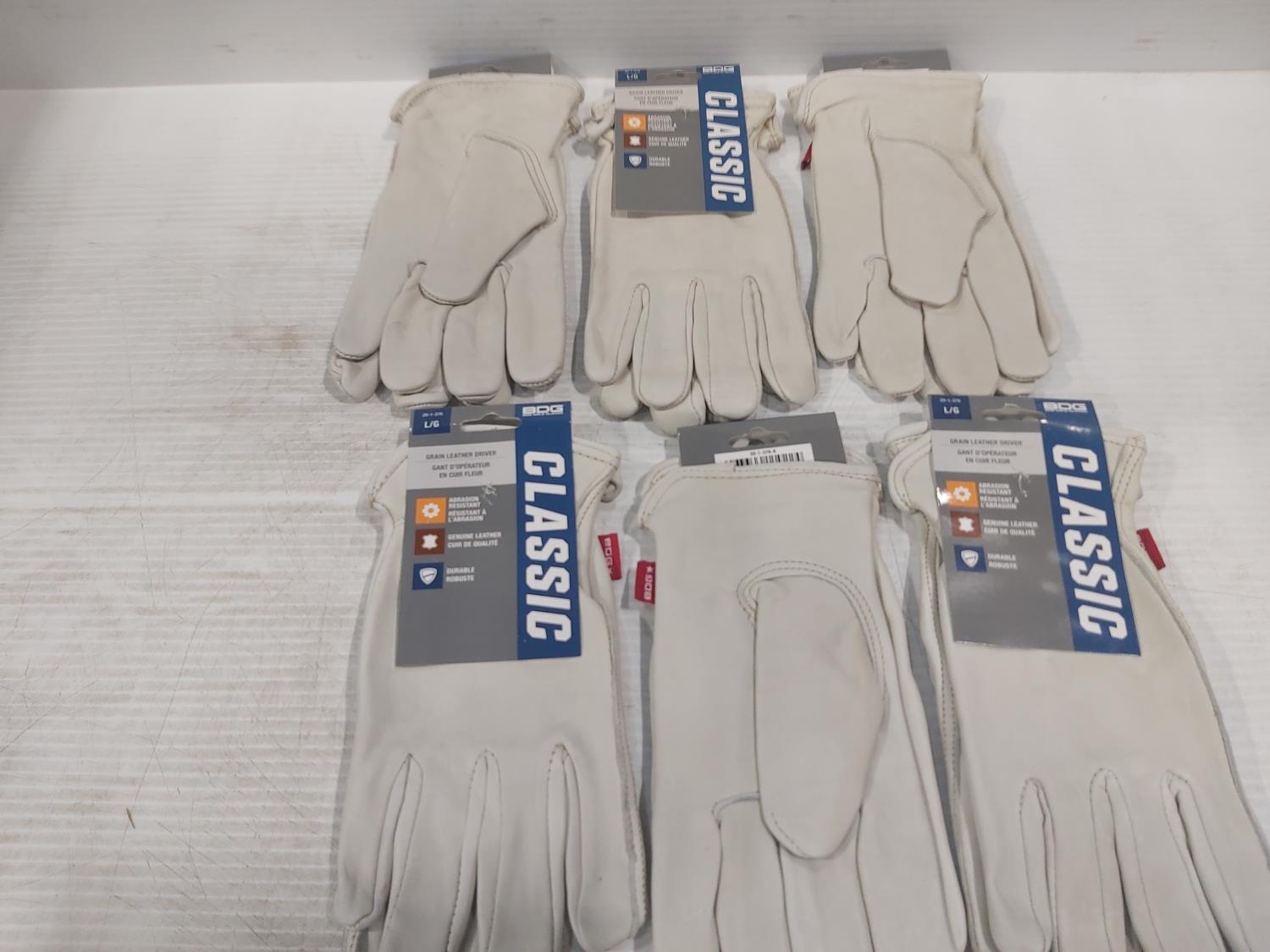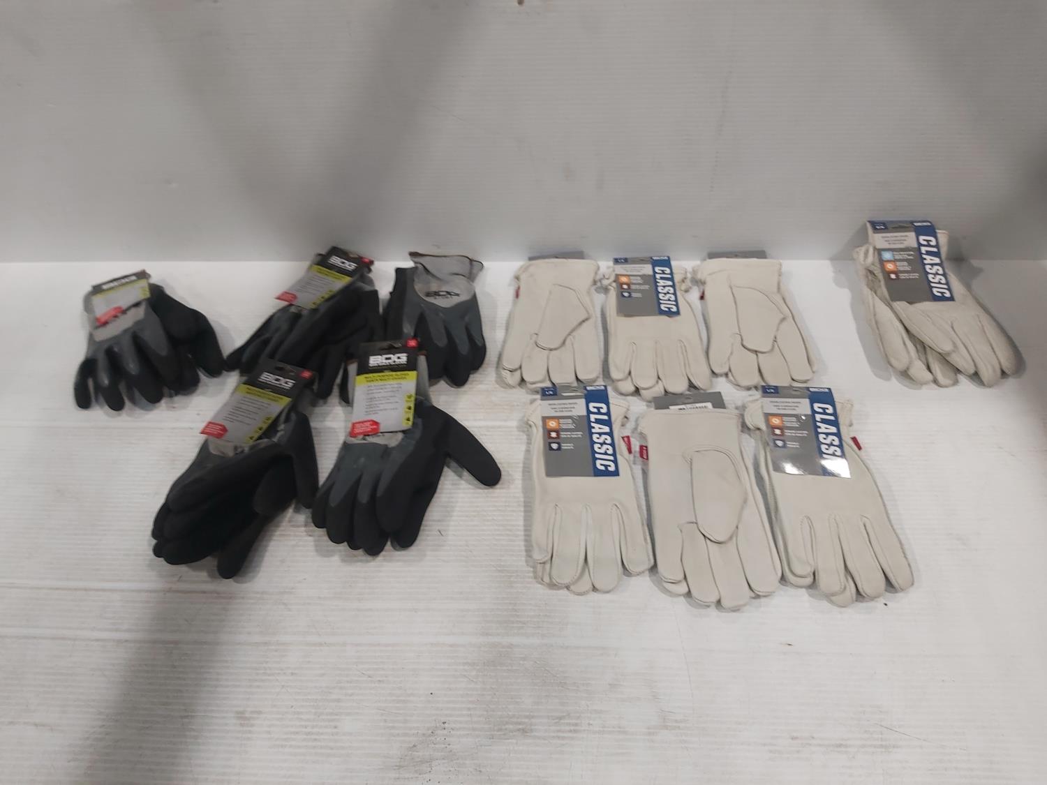 (1) Pair of medium leather gloves, (6) pair of large leather gloves, (5) pair of large latex coated gloves