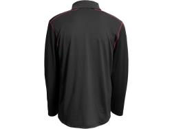 Style 810, 90% polyester, 10% spandex, breathable and moisture wicking, contrast stitching, 1/4 zipper, chin guard on main zipper, self-cuff and collar