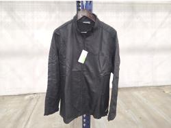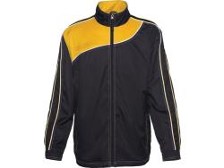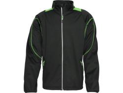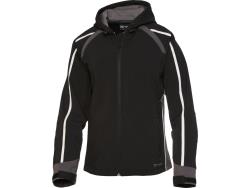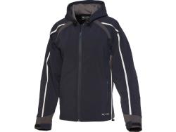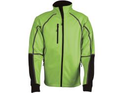 Style 923, bonded light weight soft shell, 4 way stretch Spandex for added maneuverability, wind & water resistant, drop tail with waist draw string, light elasticized cuffs, left sleeve pocket