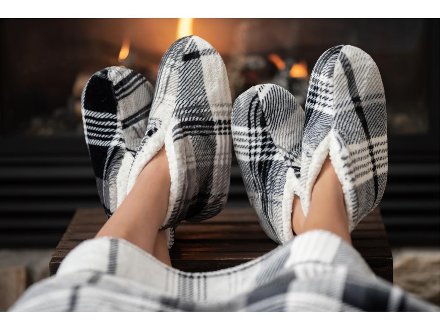 1180 (20) Small/Medium Charcoal Plaid Classic Sherpa Comfy-Booties (Unused)