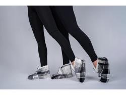1183 (20) Small/Medium Charcoal Plaid Classic Sherpa Comfy-Booties (Unused)