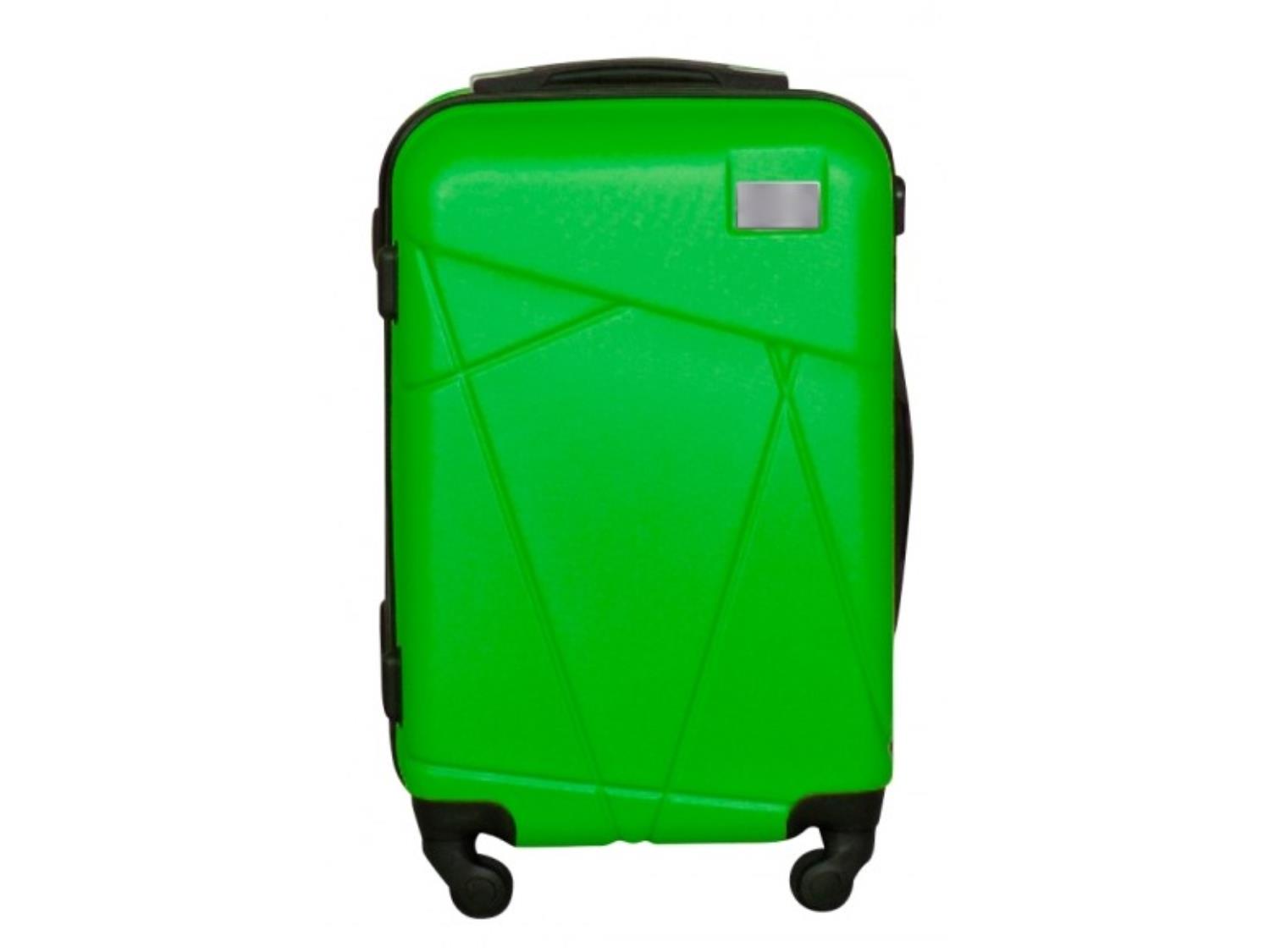 Textured ABS mould design, fully recessed aluminum pullout handle, removable toiletry divider with hanger (black), 1 flex divider, clothing travel straps, top and side ergonomic Gel grip handles, 4 wheel spinners, inset metal plate 2.25” W x 1.285” H, size 21” X 14” X 9 (Carry on size)
