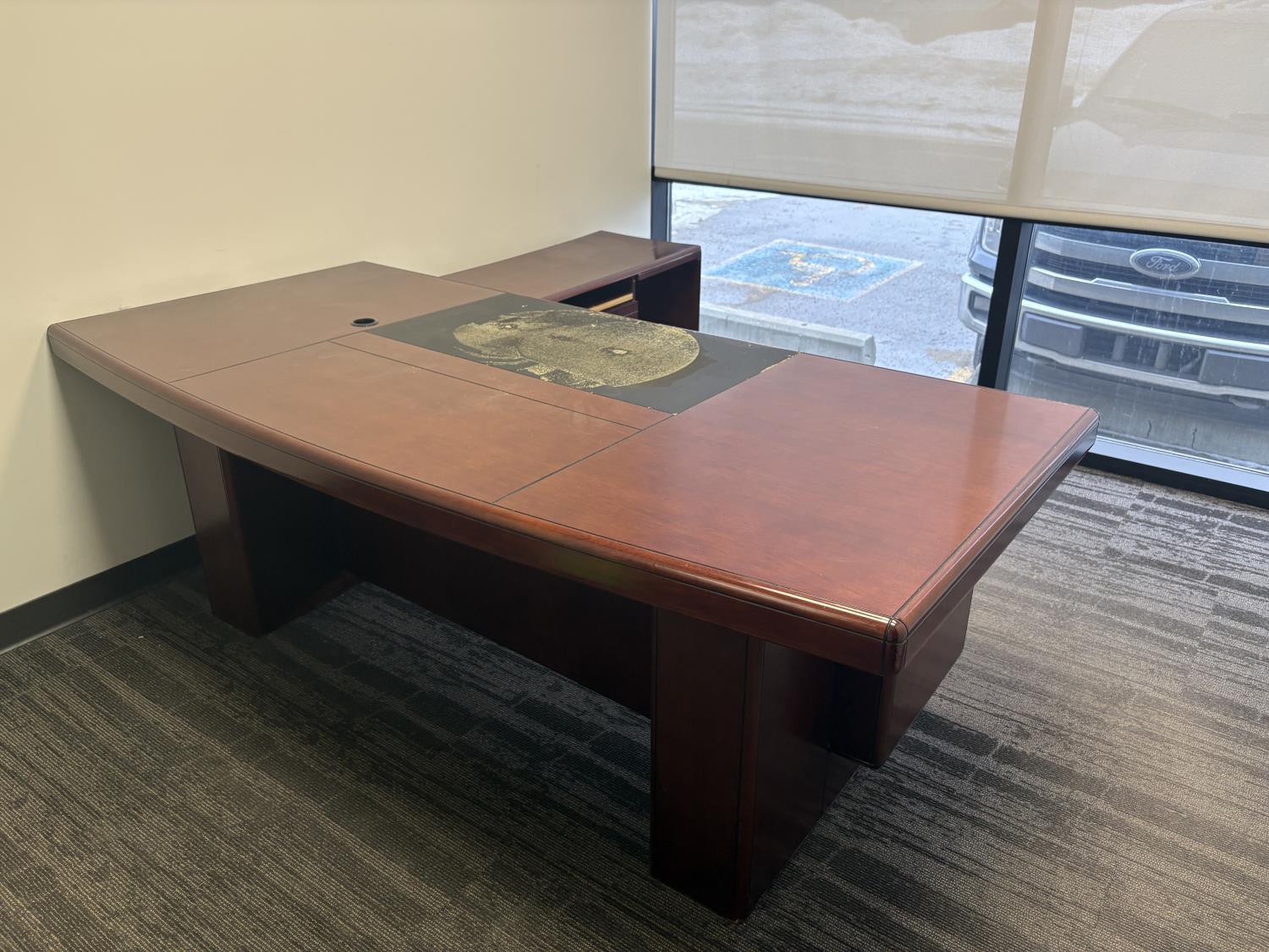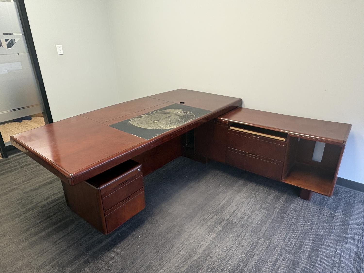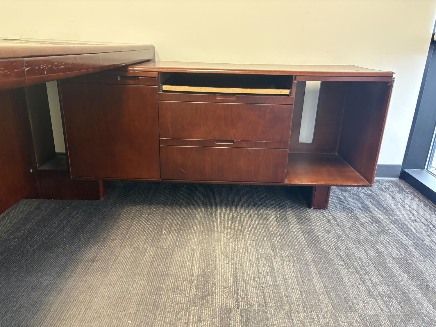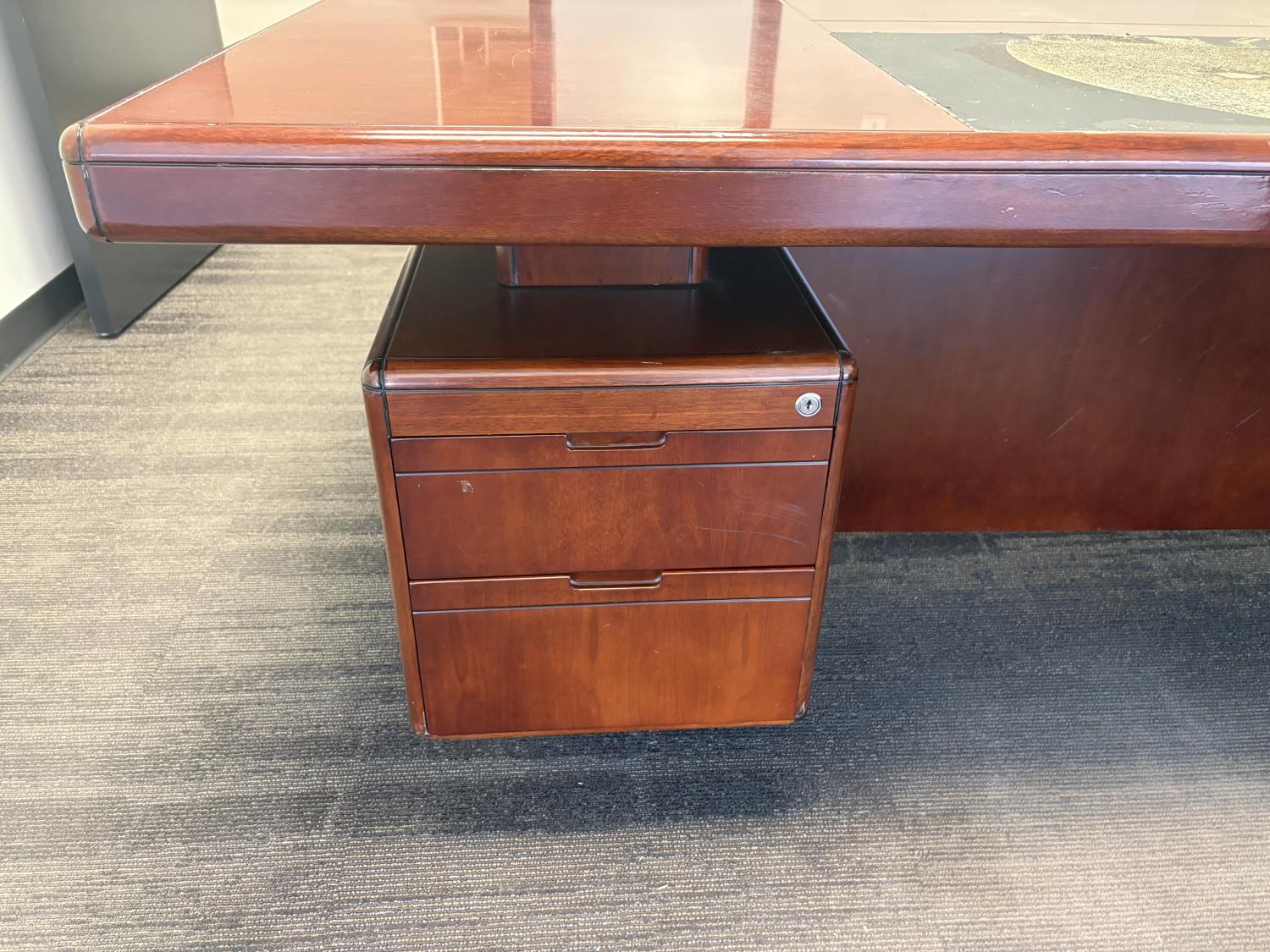 desk 83 inch wide X 39 inch deep X 30 inch high, drawer unit 55 inch wide X 18 inch deep X 27 inch high