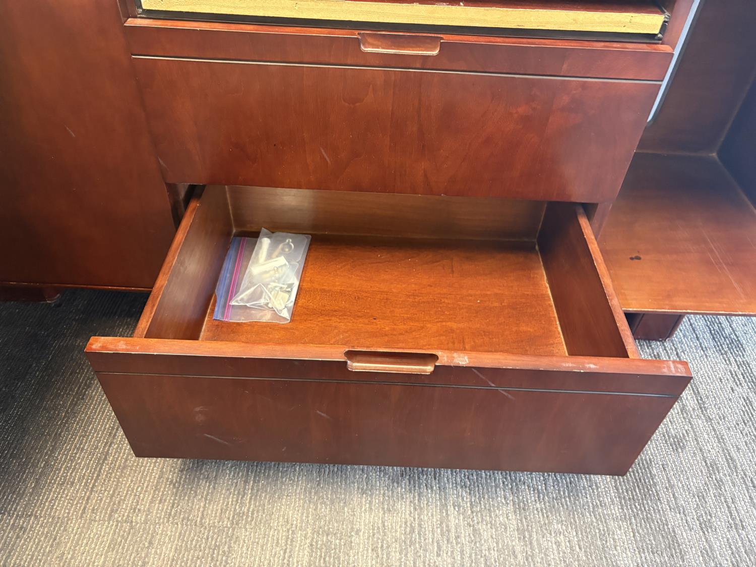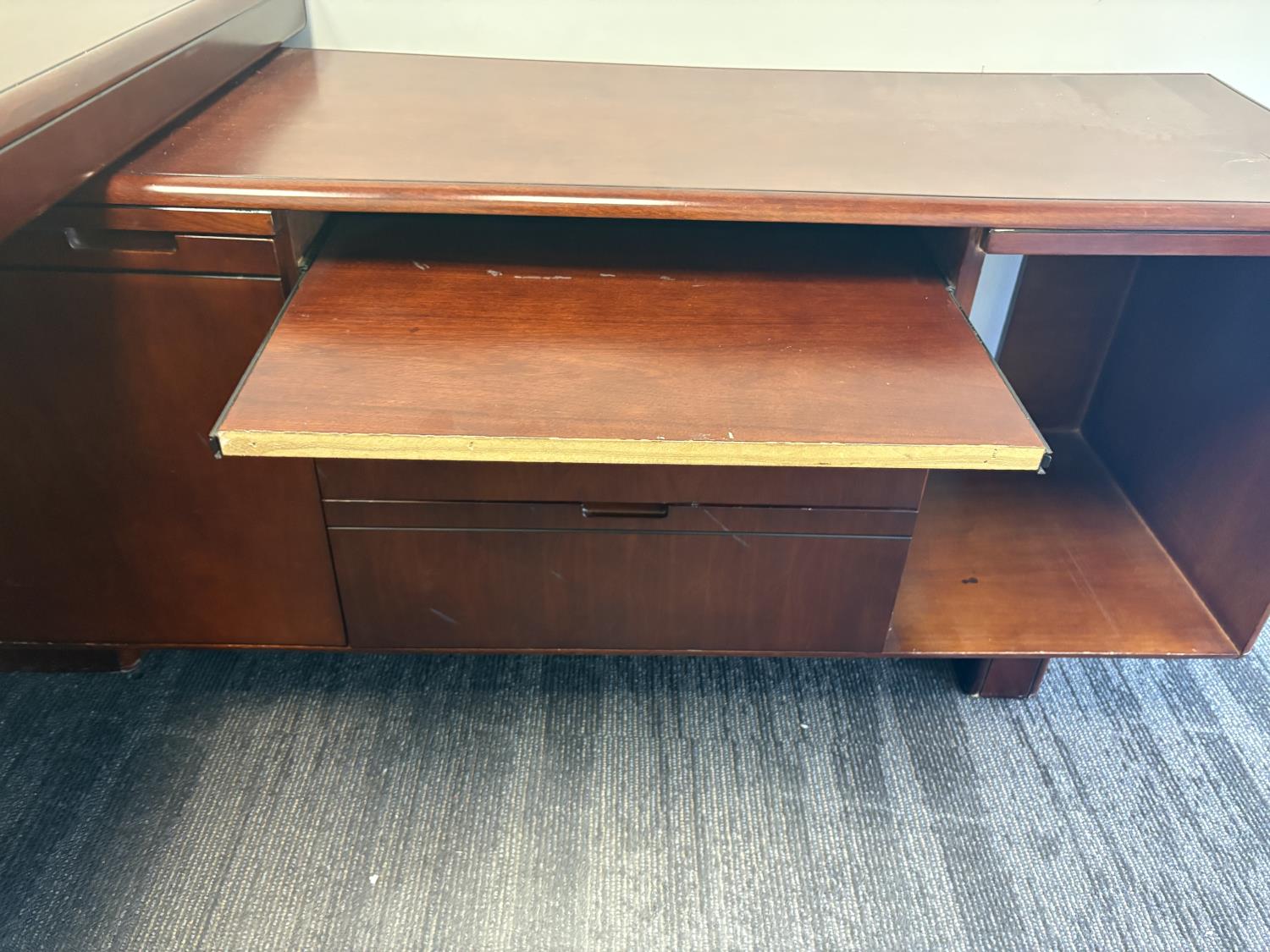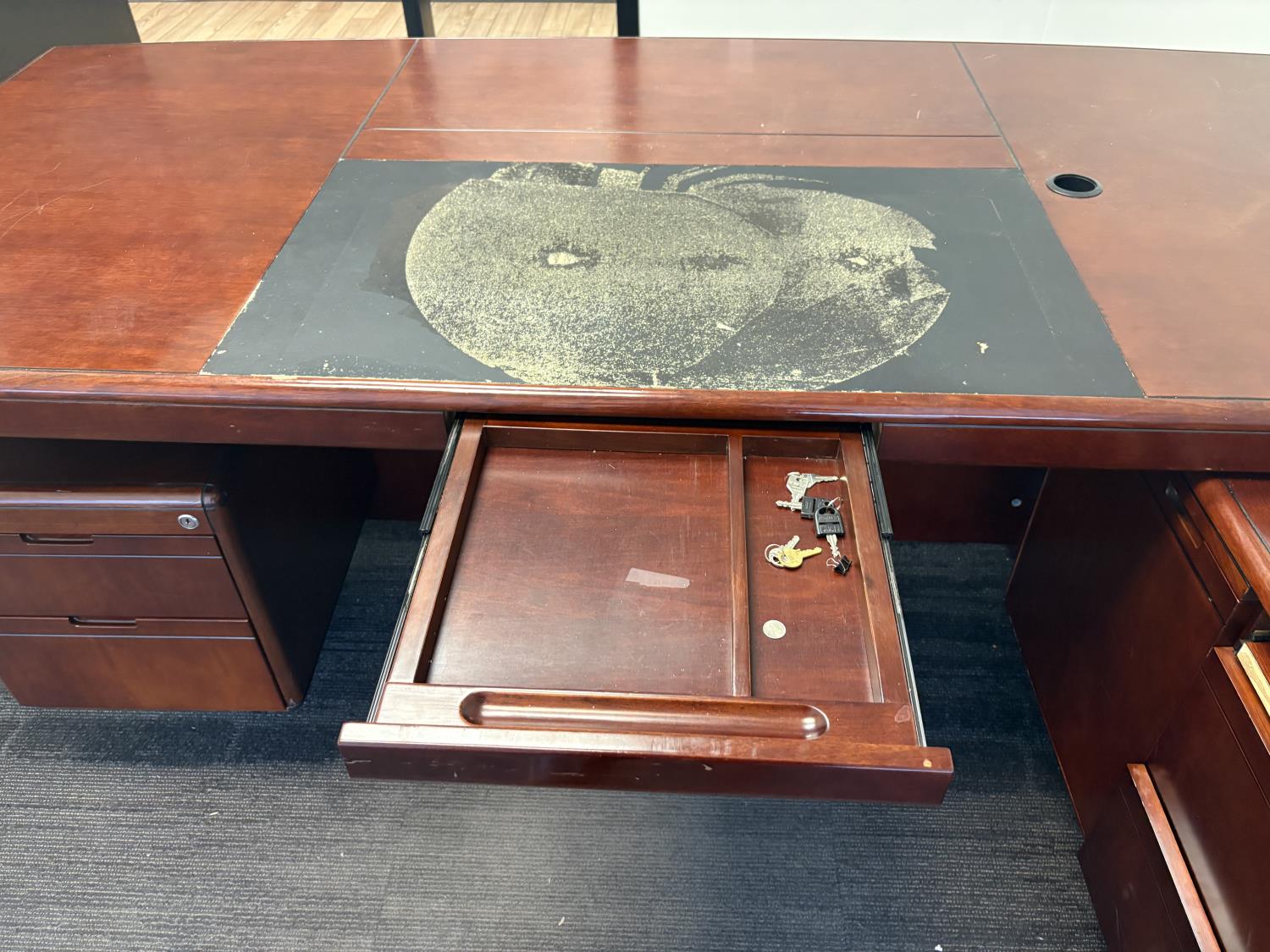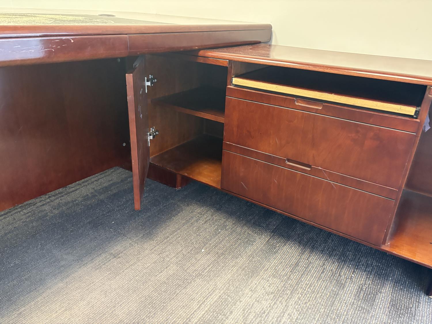 desk 83 inch wide X 39 inch deep X 30 inch high, drawer unit 55 inch wide X 18 inch deep X 27 inch high
