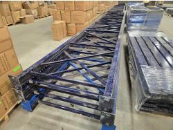 (6) end frames 42 inch X 20 ft high, (30) 9 Ft shelf beams 4-5/8 inch deep, (30) wire mesh shelves, makes a pallwt rack 42 inch wide X 20 ft high X 46 ft long with 3 shelves
