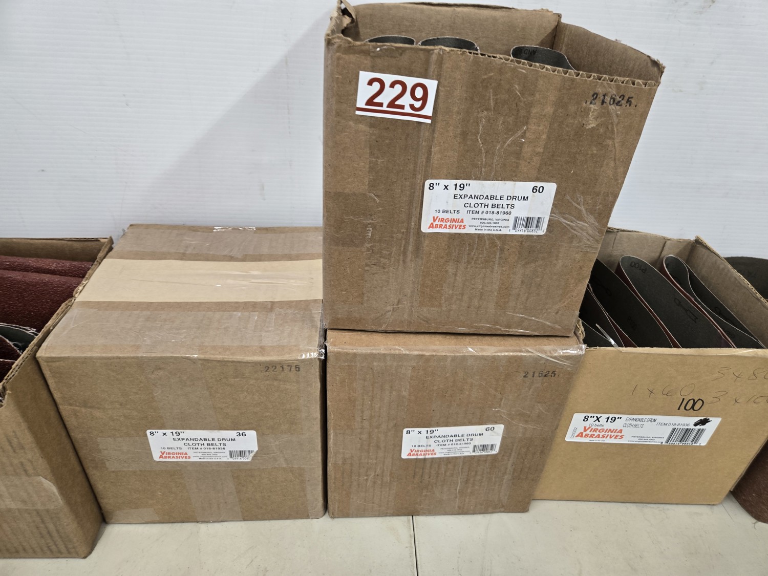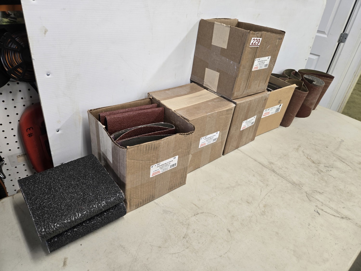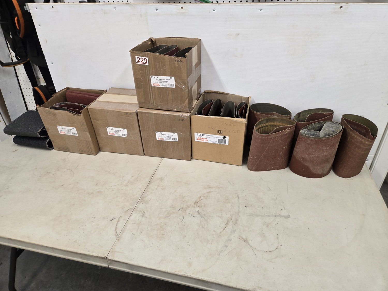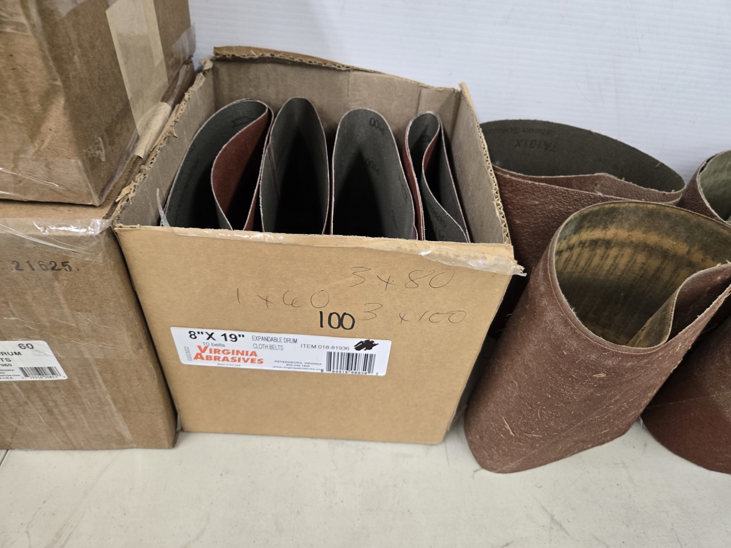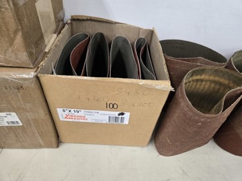 (4) 16 grit, (15) 36 grit, (13) 60 grit, (6) 100 grit, (10) slightly used various grit belts